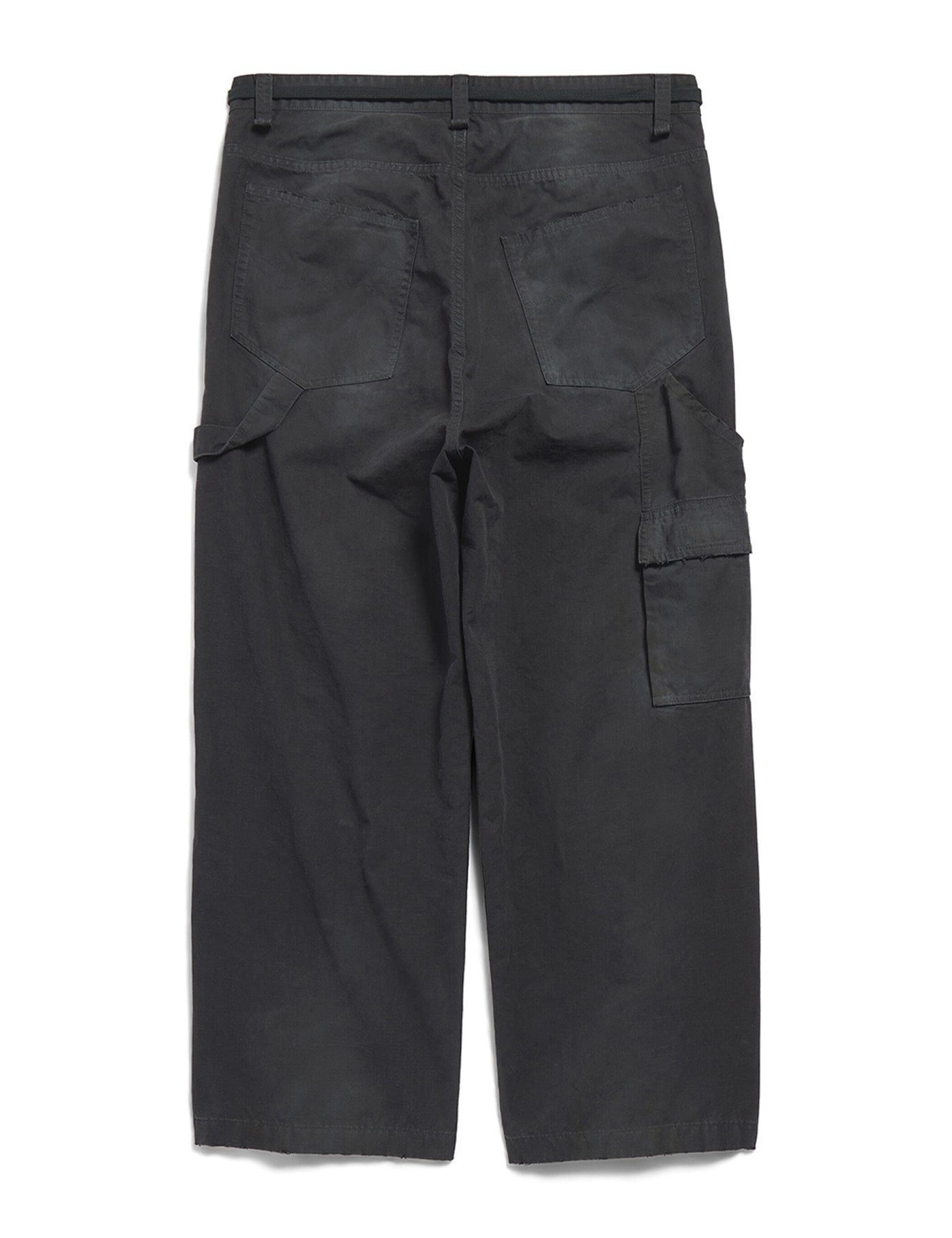 -loops at waist with lace -two pockets on the front -button and zip closure -two patch pockets on the back -a patch pocket on the back -wide leg