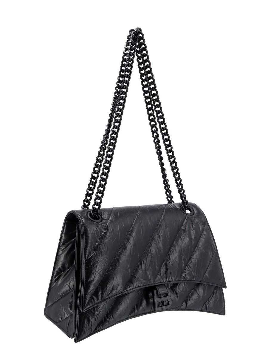 Black leather medium Crush shoulder bag Width: 31 cm Height: 20 cm Depth: 13 cm Min shoulder strap length: 28 cm Max shoulder strap length: 53 cm