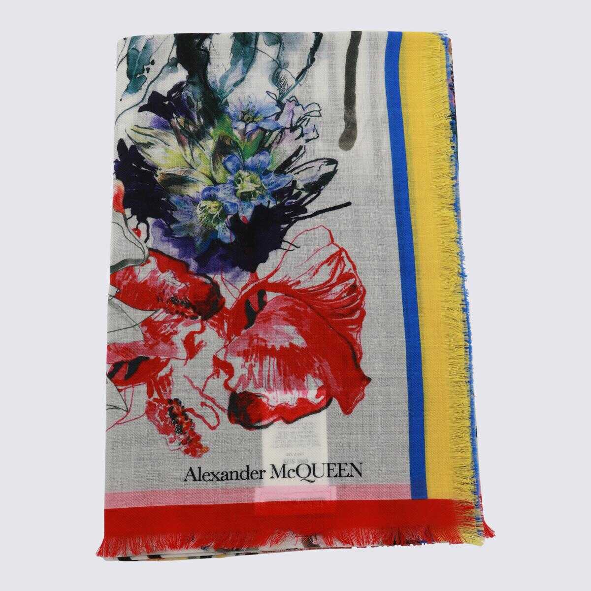 Multicolor silk scarves from Alexander McQueen featuring all over print, logo and square shape.