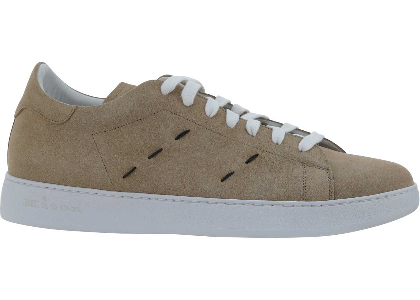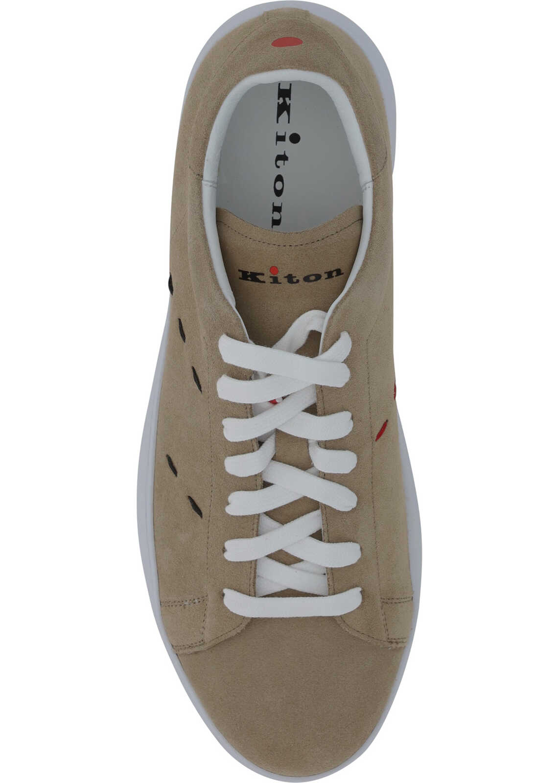 Leather Sneakers by Kiton, details on side panels, front lace-up closure, round toe, flat sole, suede upper design.