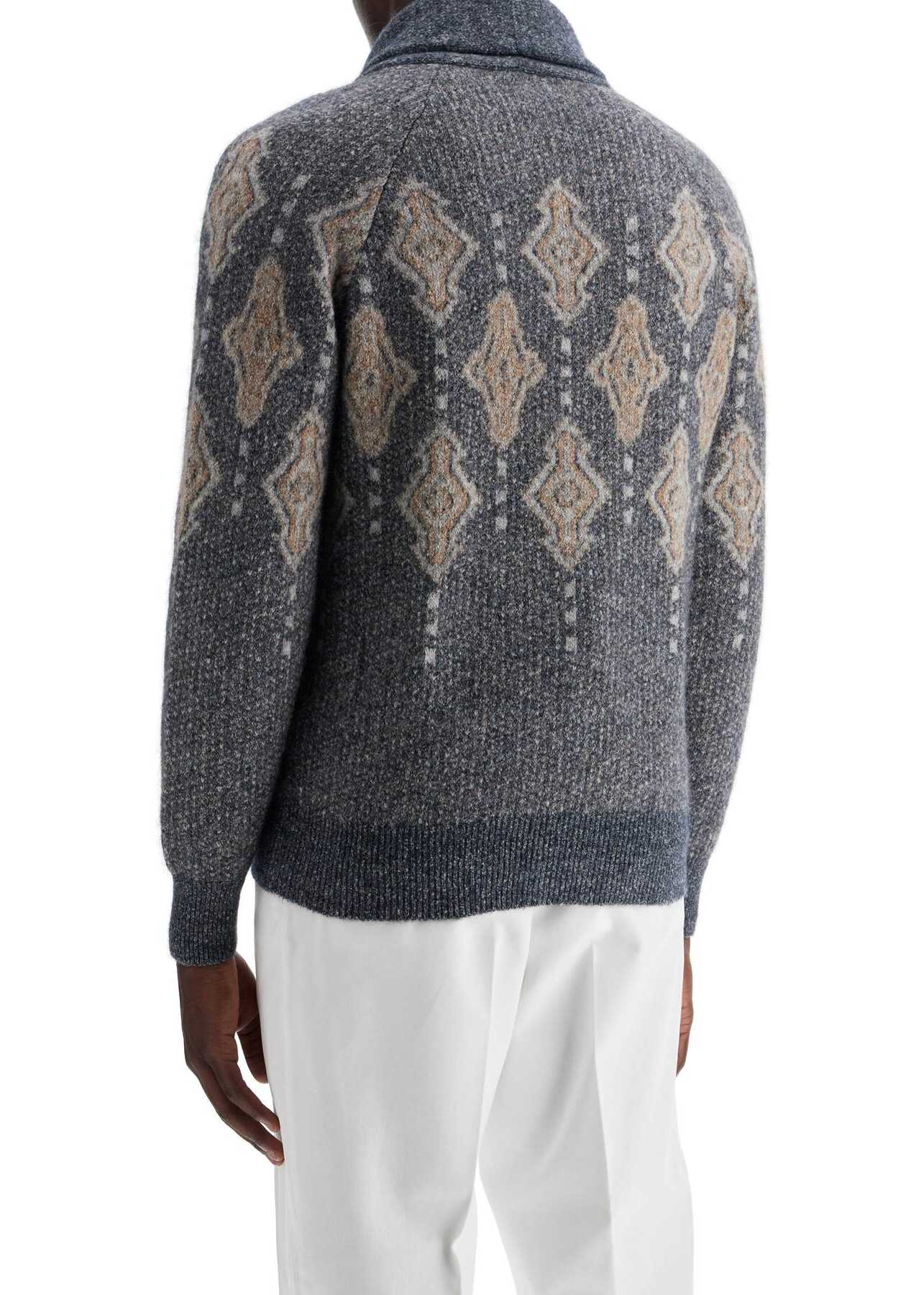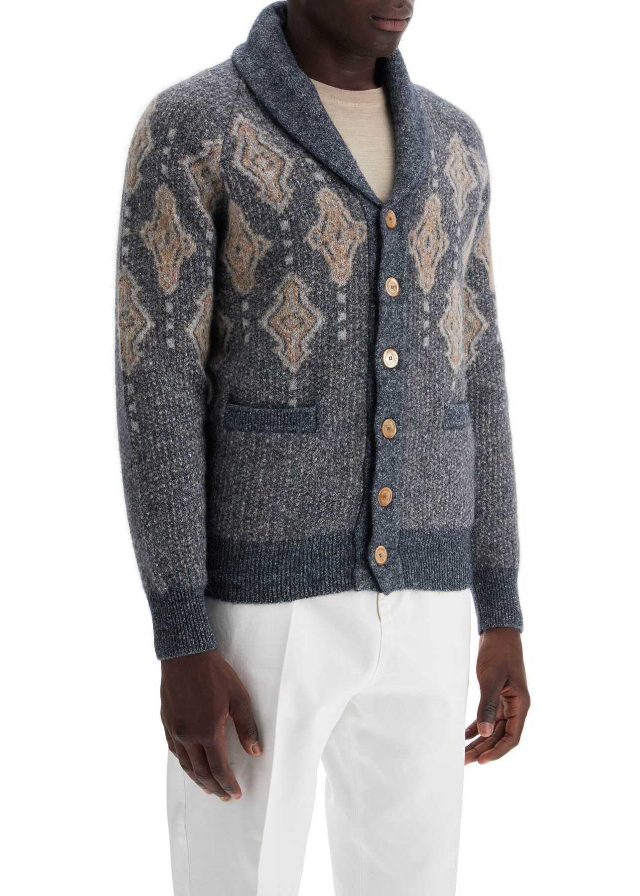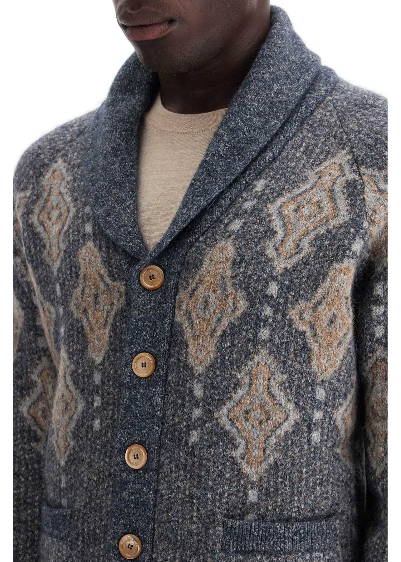 Crafted from a soft blend of cotton and alpaca, this Brunello Cucinelli cardigan stands out for its jacquard knit with retro-inspired geometric patterns. The design features raglan sleeves, a shawl collar, button closure, and two front pockets. Regular fit. The model is 187 cm tall and wears size IT 48.