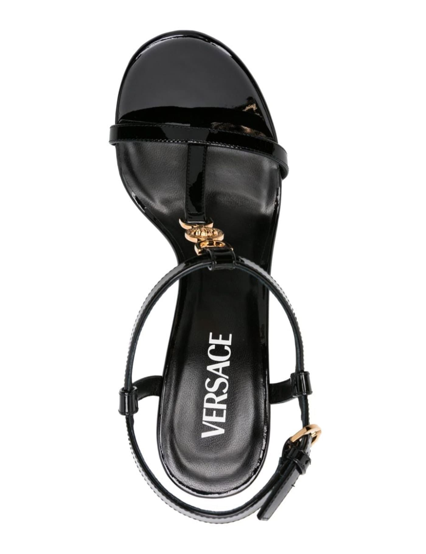 Adjustable strap on the ankle, La Medusa metal detail, Stiletto heel, Made in Italy, Leather, External : Leather