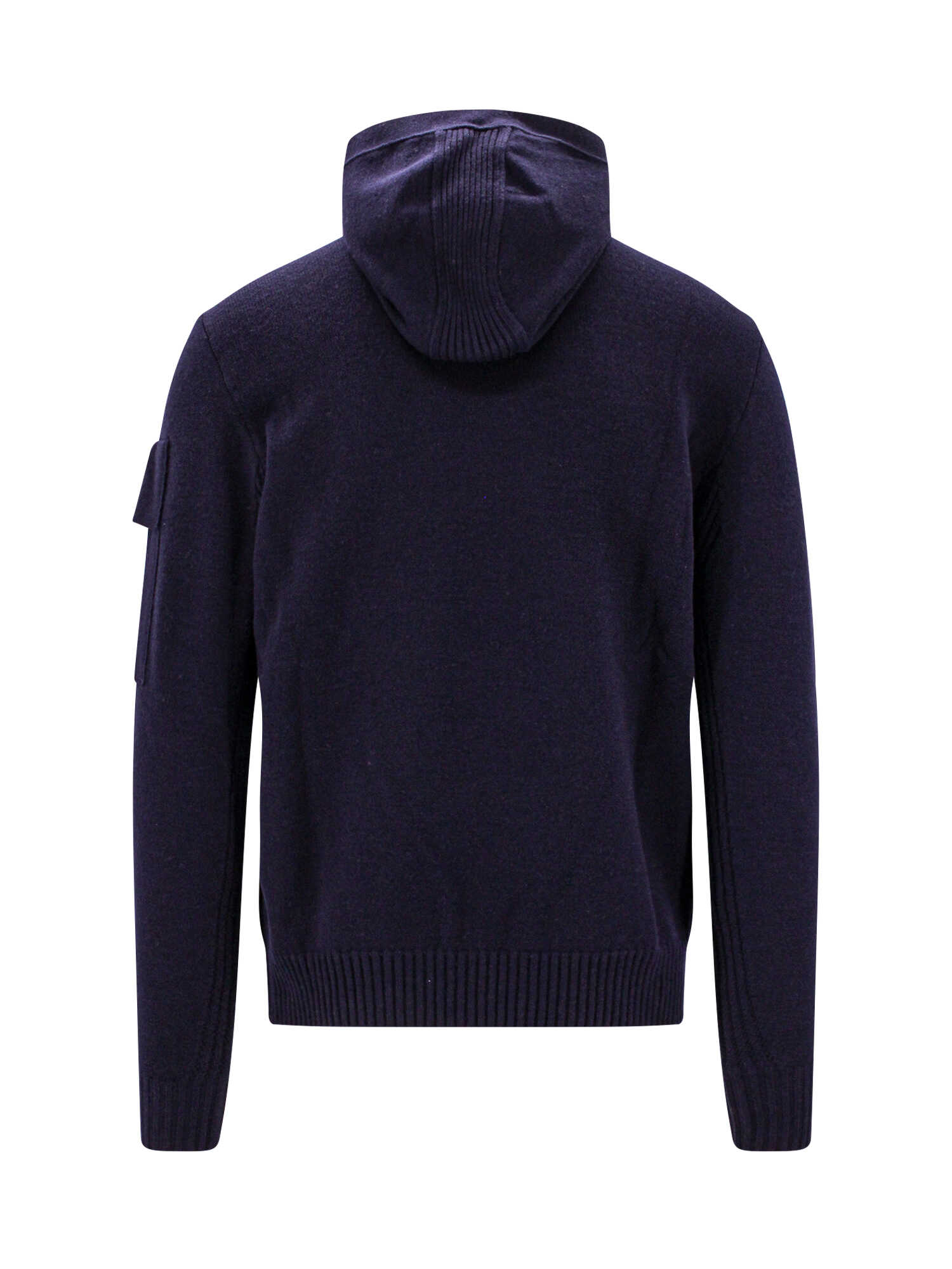Stay warm and stylish with this Wool blend sweater from C.P.COMPANY. The Blue sweater features a hood, long sleeves, and an applied pocket on the left sleeve. The ribbed profiles add a touch of uniqueness. Made with 88% wool and 12% polyester, it provides both comfort and durability. Perfect for men, it falls under the category of Men > Clothing > Knitwear. Get this fashionable sweater now!