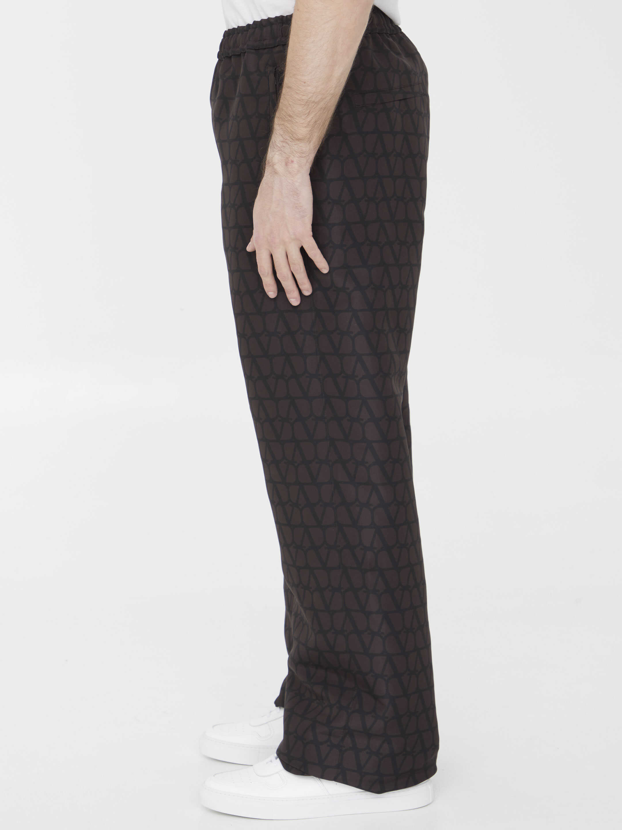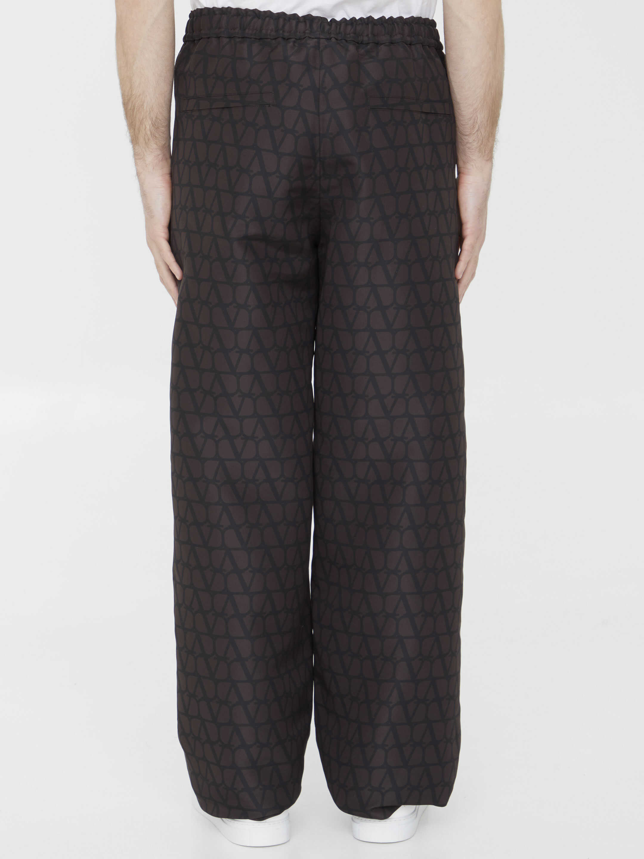 Experience luxury and style with our black silk trousers from VALENTINO. Featuring an all-over Toile Iconographe print and made in Italy with 100% silk, these trousers offer sophistication and comfort. The elastic waistband and lateral pockets with hidden zip provide convenience while the back pockets with zip add a touch of practicality. Perfect for any occasion, these trousers are a must-have for any fashion-conscious man. Available in IT sizes.
