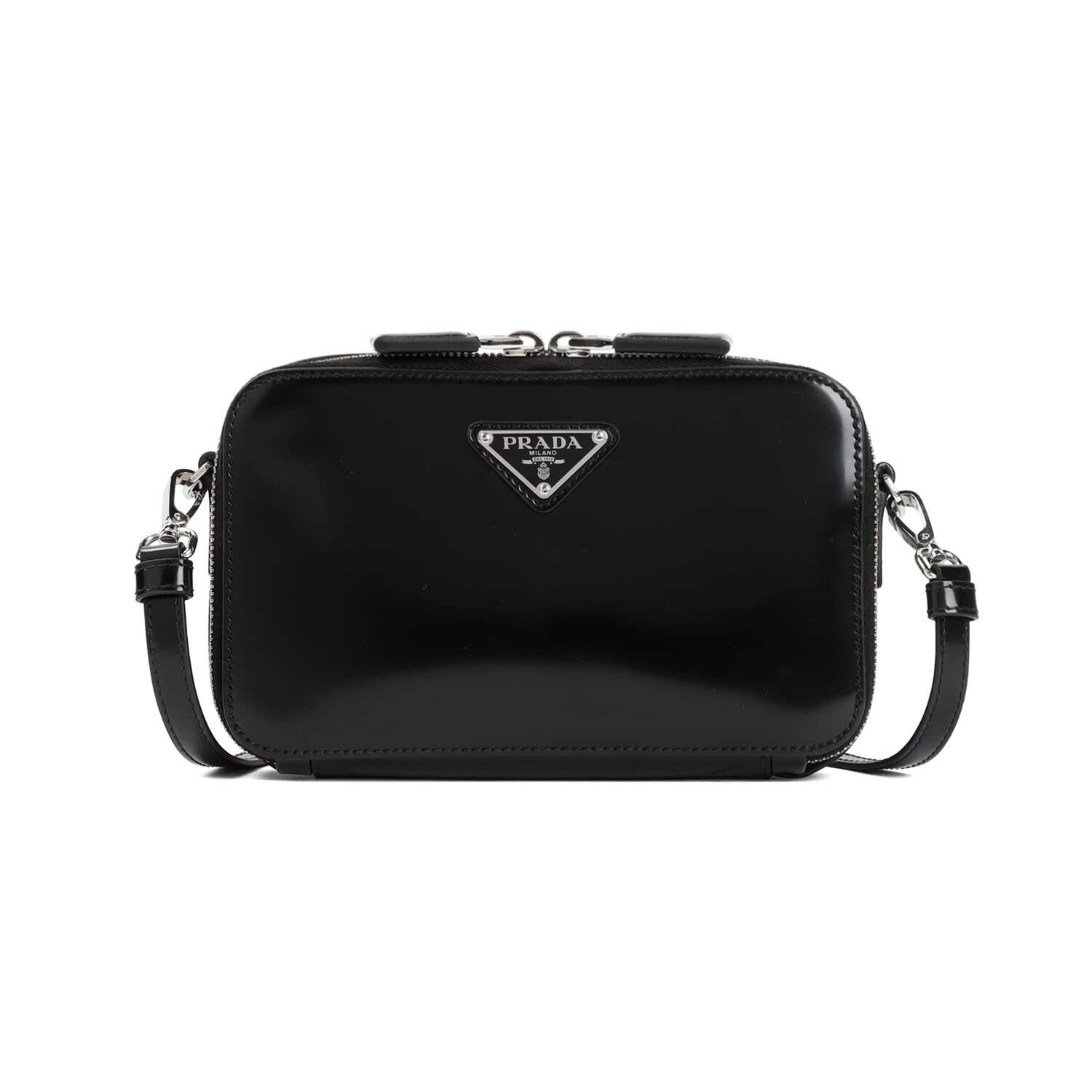 Prada Bandoliera Black Patent Leather Belt. Crafted in black patent calf leather, silver-tone hardware, Prada enameled logo on the front, double zip closure with leather pullers, attachable and adjustable shoulder strap.
