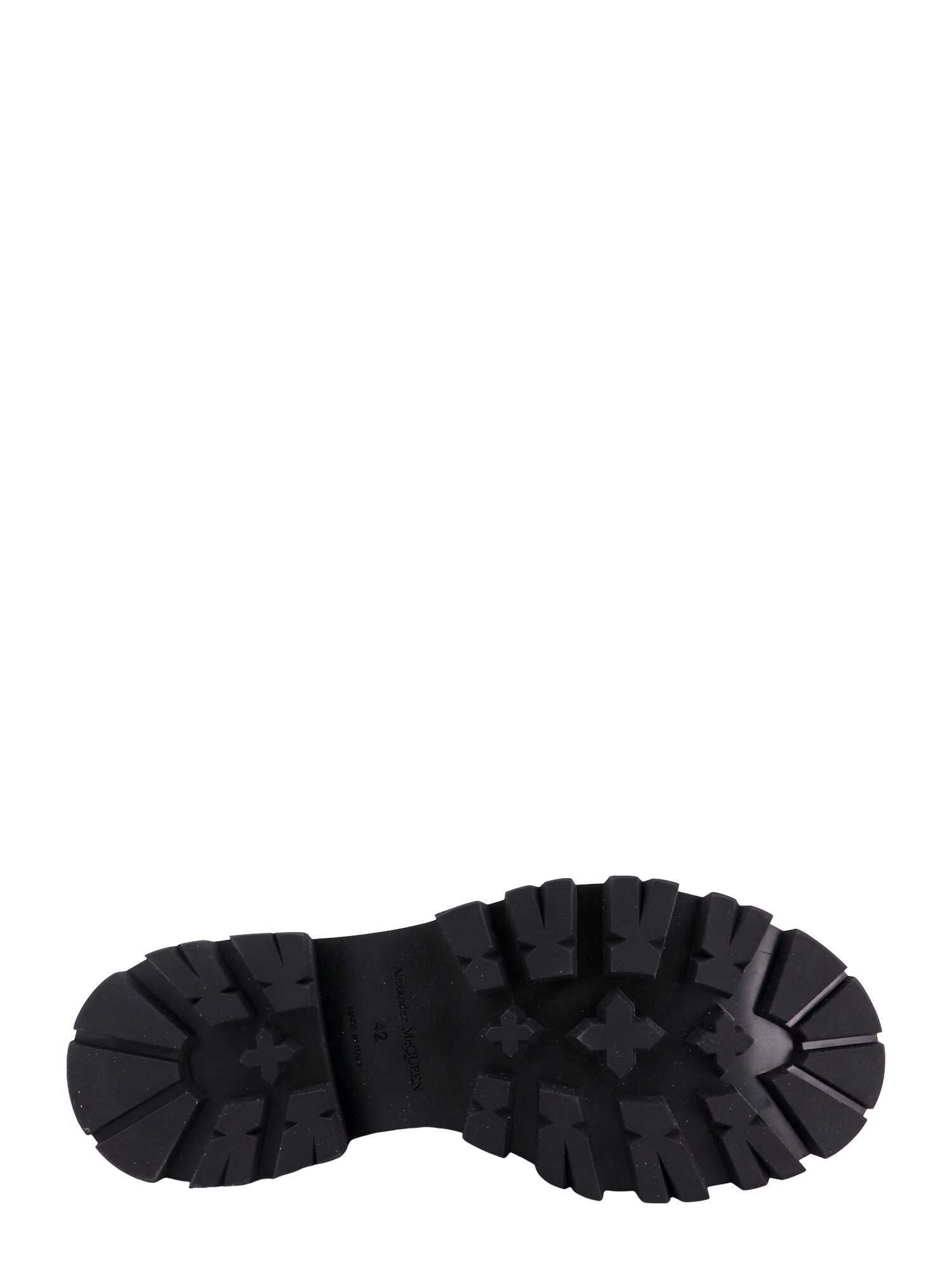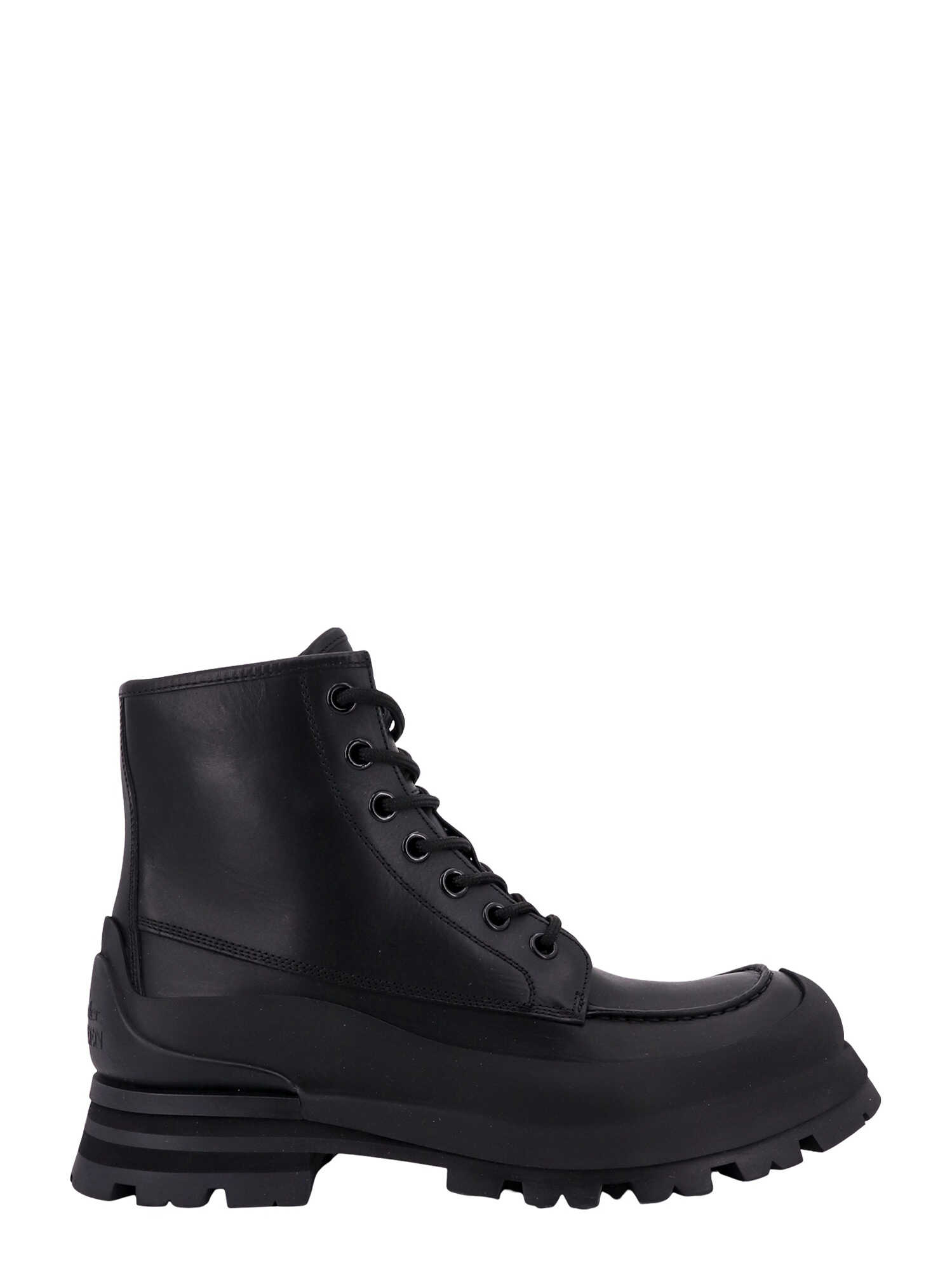These stylish black leather boots by ALEXANDER MCQUEEN are perfect for men. Made in Italy, they feature a lace-up design with logo, comfortable rubber sole, and high-quality leather material. The boots are ideal for any occasion and will complement your attire. Get these trendy ankle boots now!