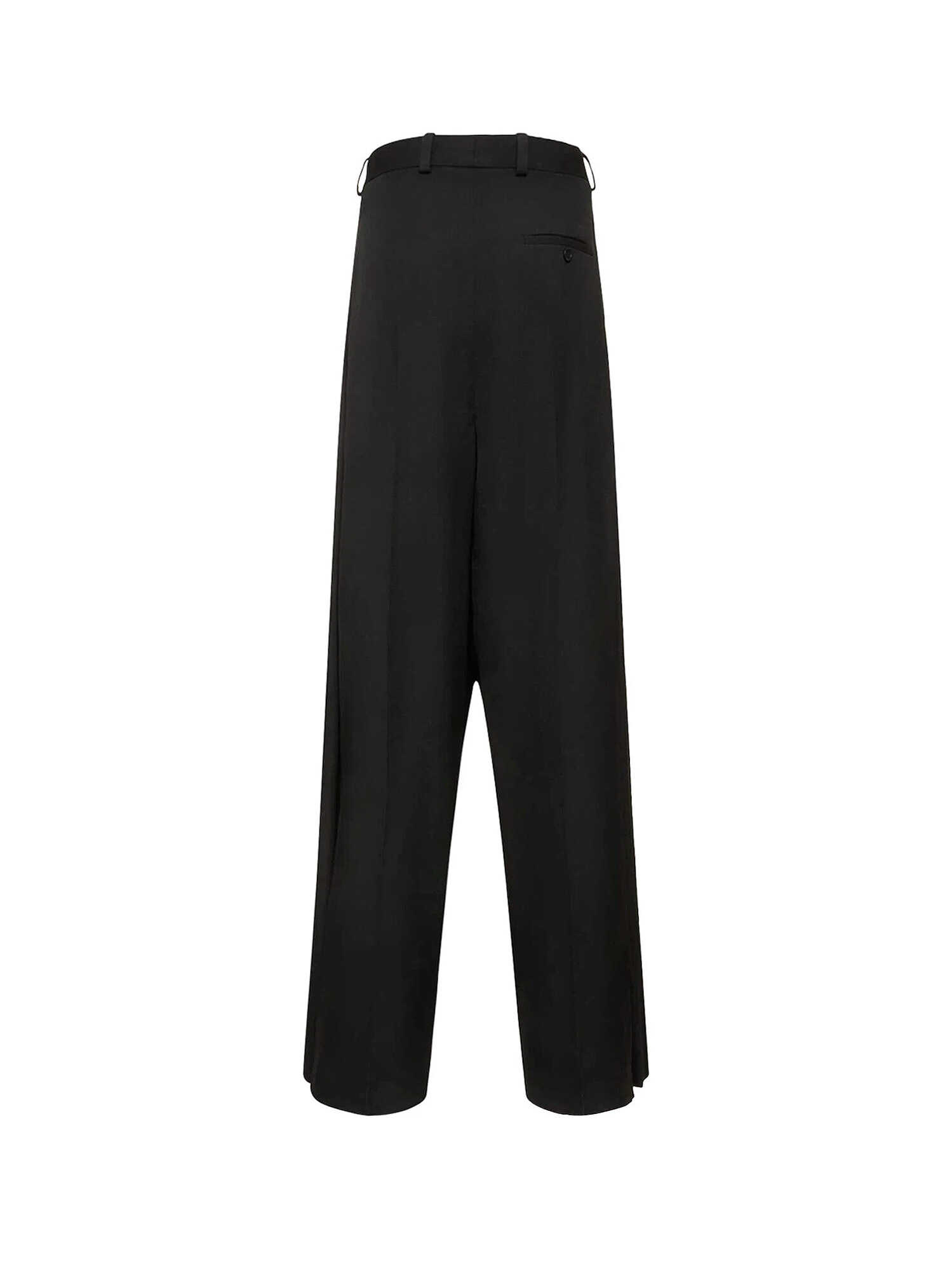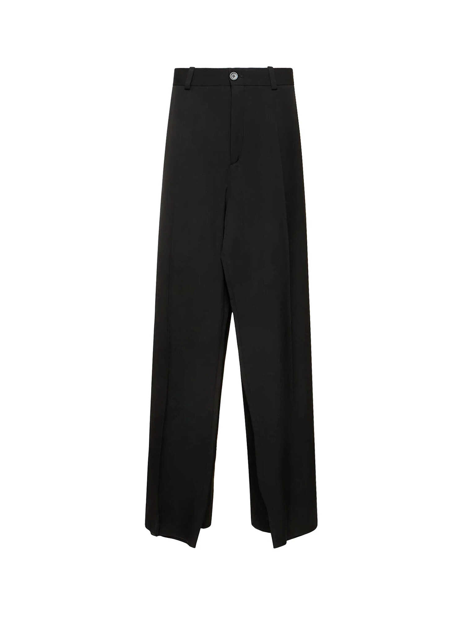 Closure with button and zip, Lateral slant pockets and one welt pocket with button, Wide leg, made in Italy, 100% Virgin wool