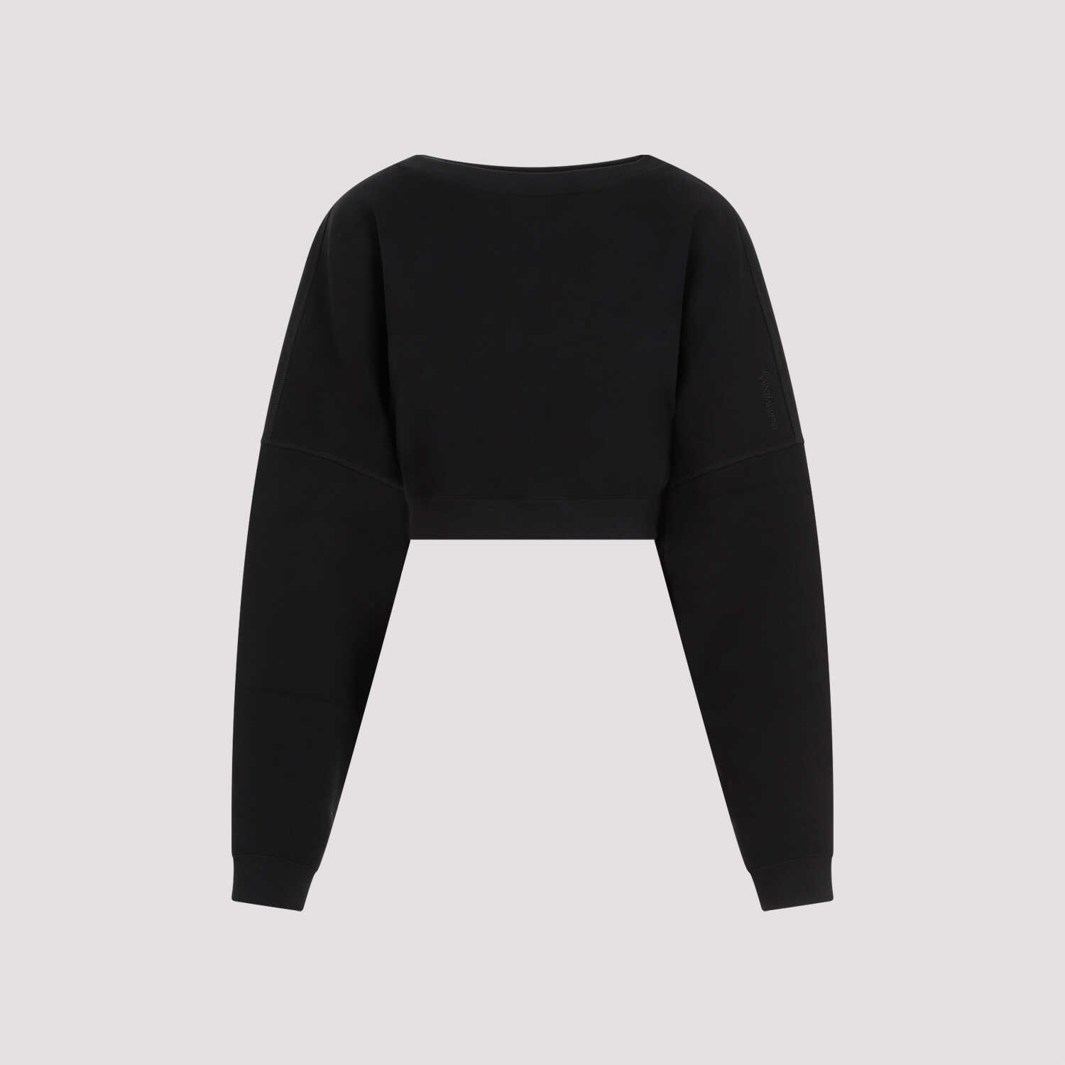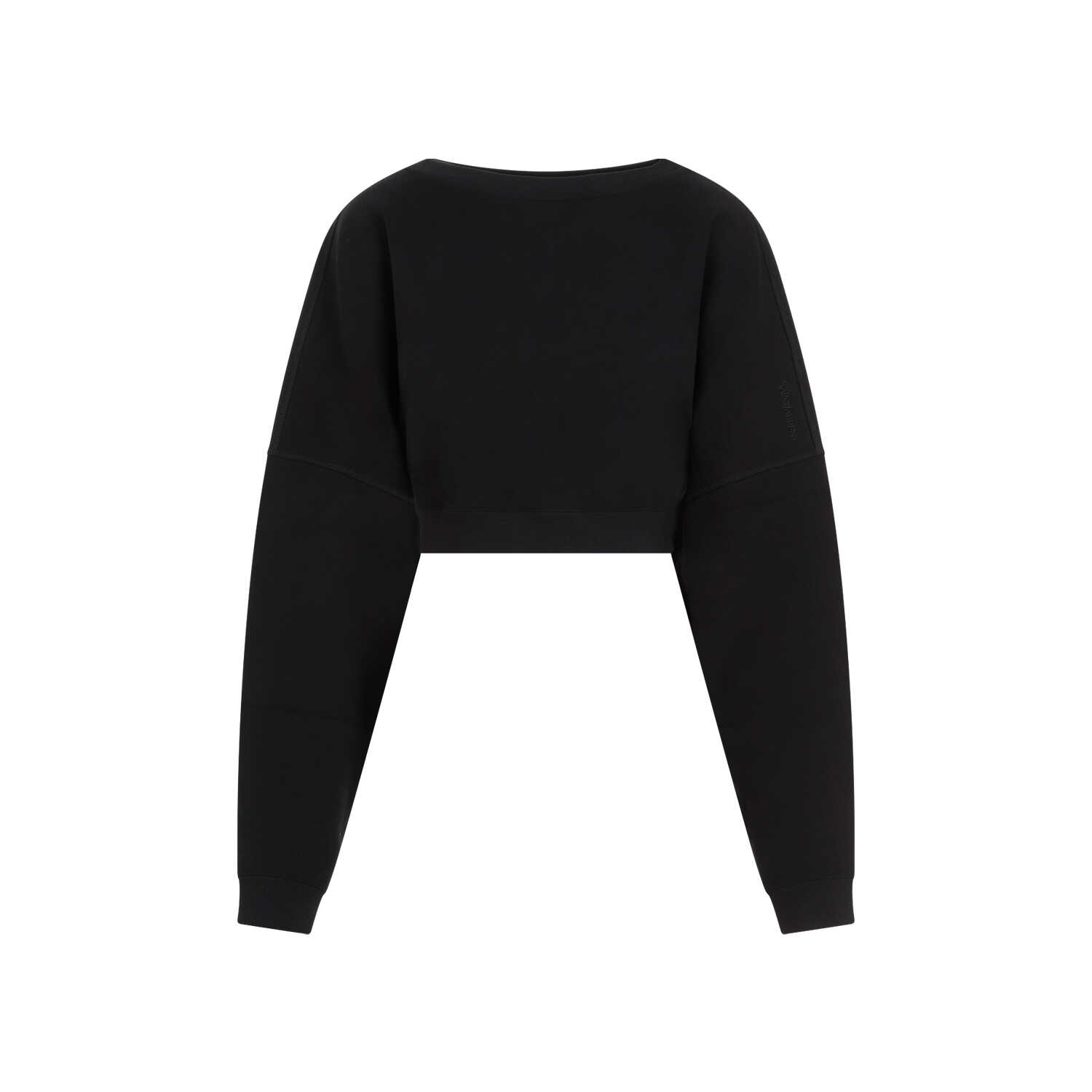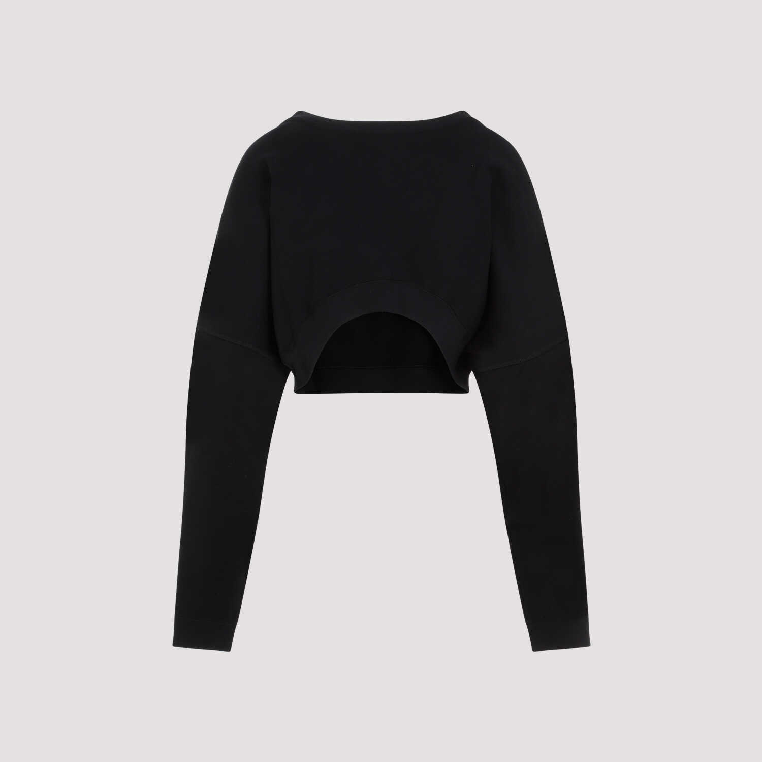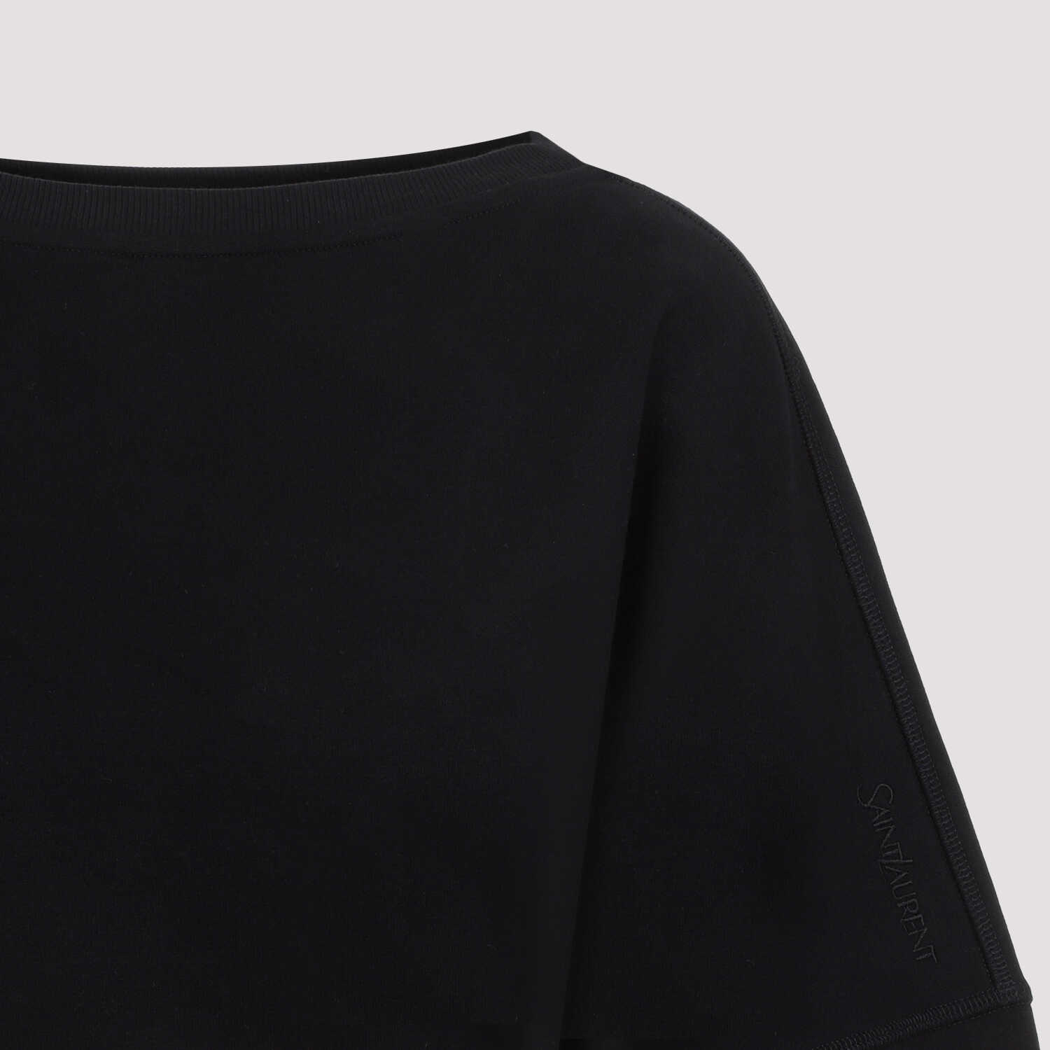 Saint Laurent Black Cotton Sweatshirt. Black cotton, round neckline, dropped shoulders, white long sleeves, ribbed edges, cut-out detail at the back, cropped.