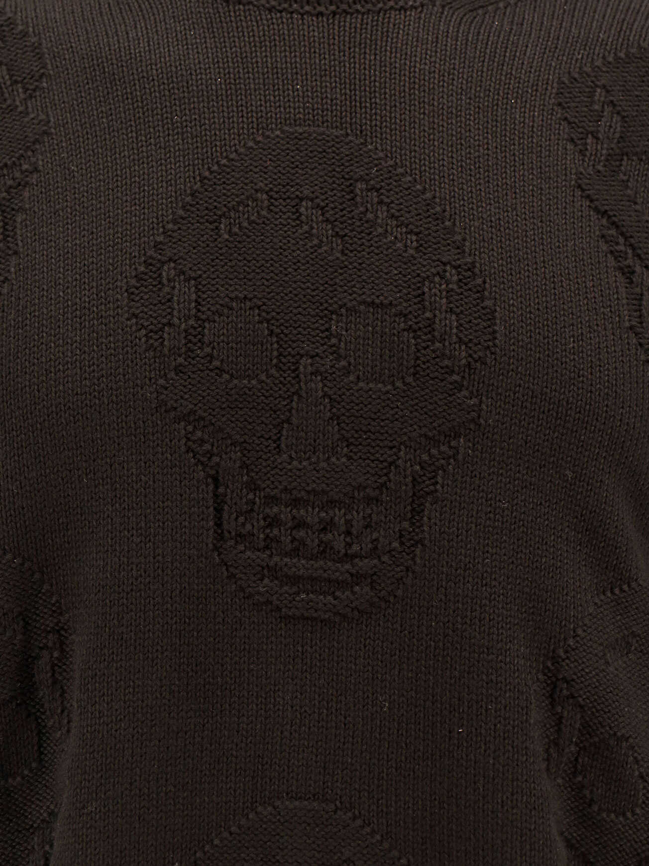 Ribbed crew-neck, Long sleeve with cuff, All-over Skull motif, Made in Italy, 100% cotton