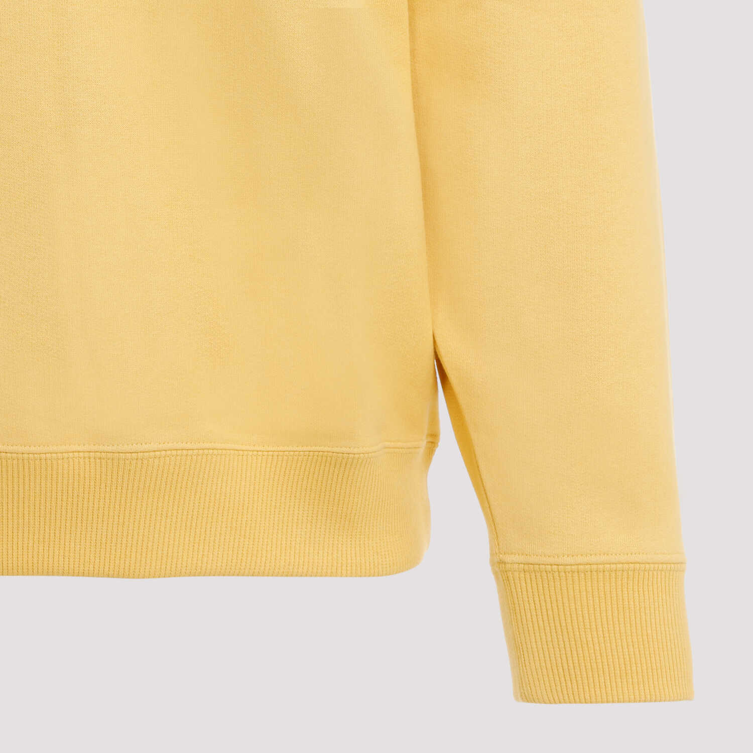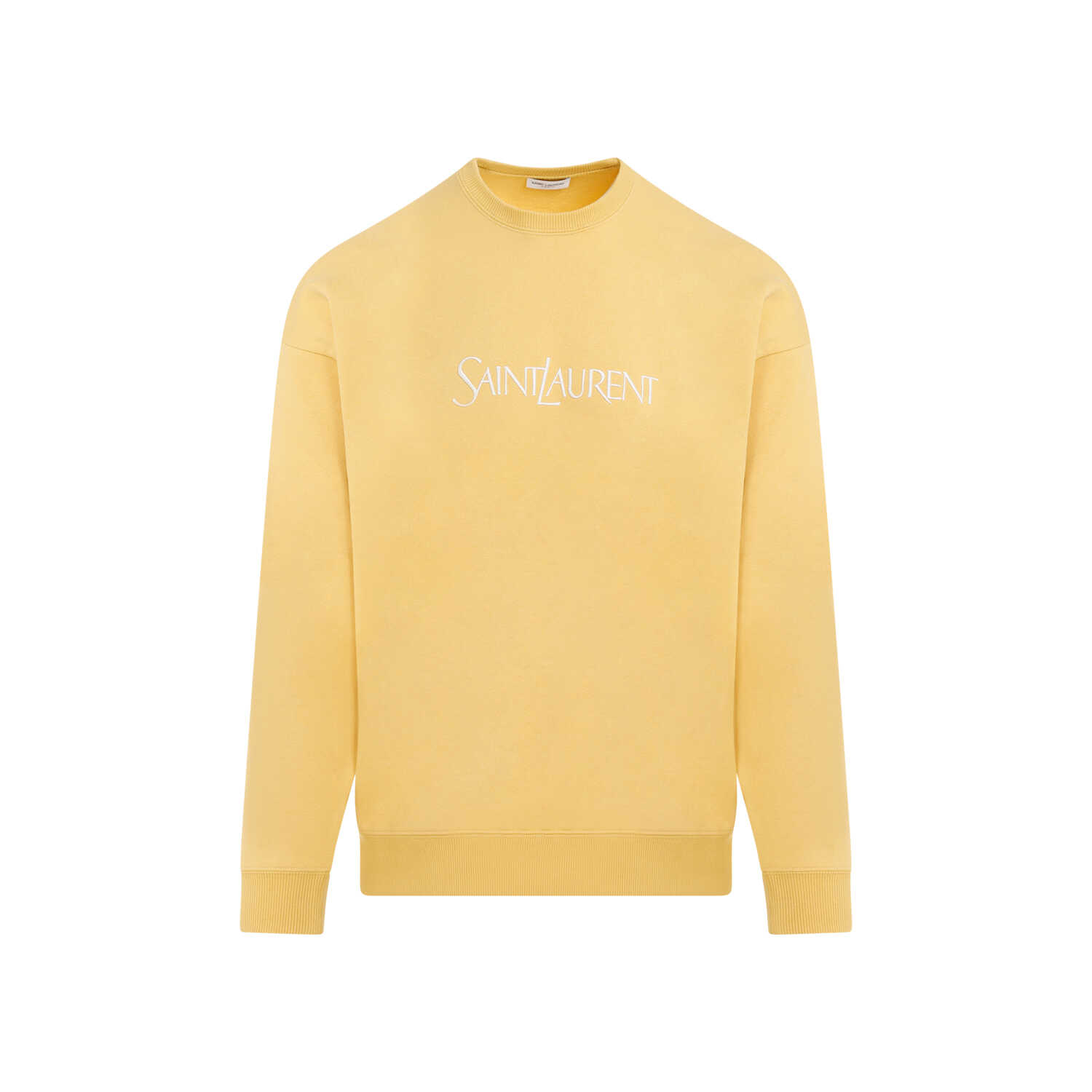 Saint Laurent Yellow Cotton Hoodie. Yellow cotton, white Cassandre logo embroidered on the chest, dropped shoulders, long sleeves, ribbed edges.