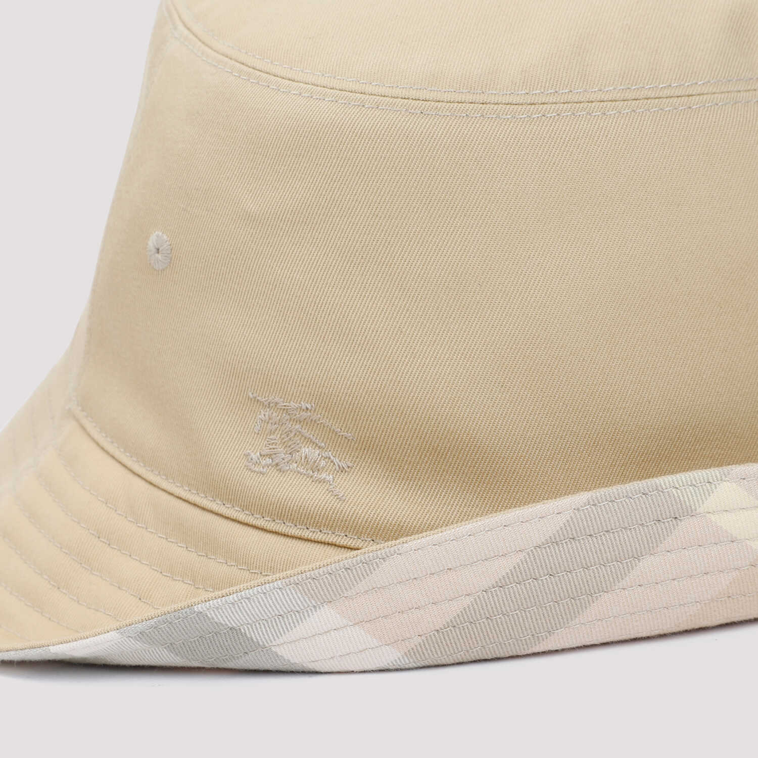 Burberry Flax Beige Bucket Hat. Crafted in polyester and cotton blend, tonal stitching, bucket deisgn.