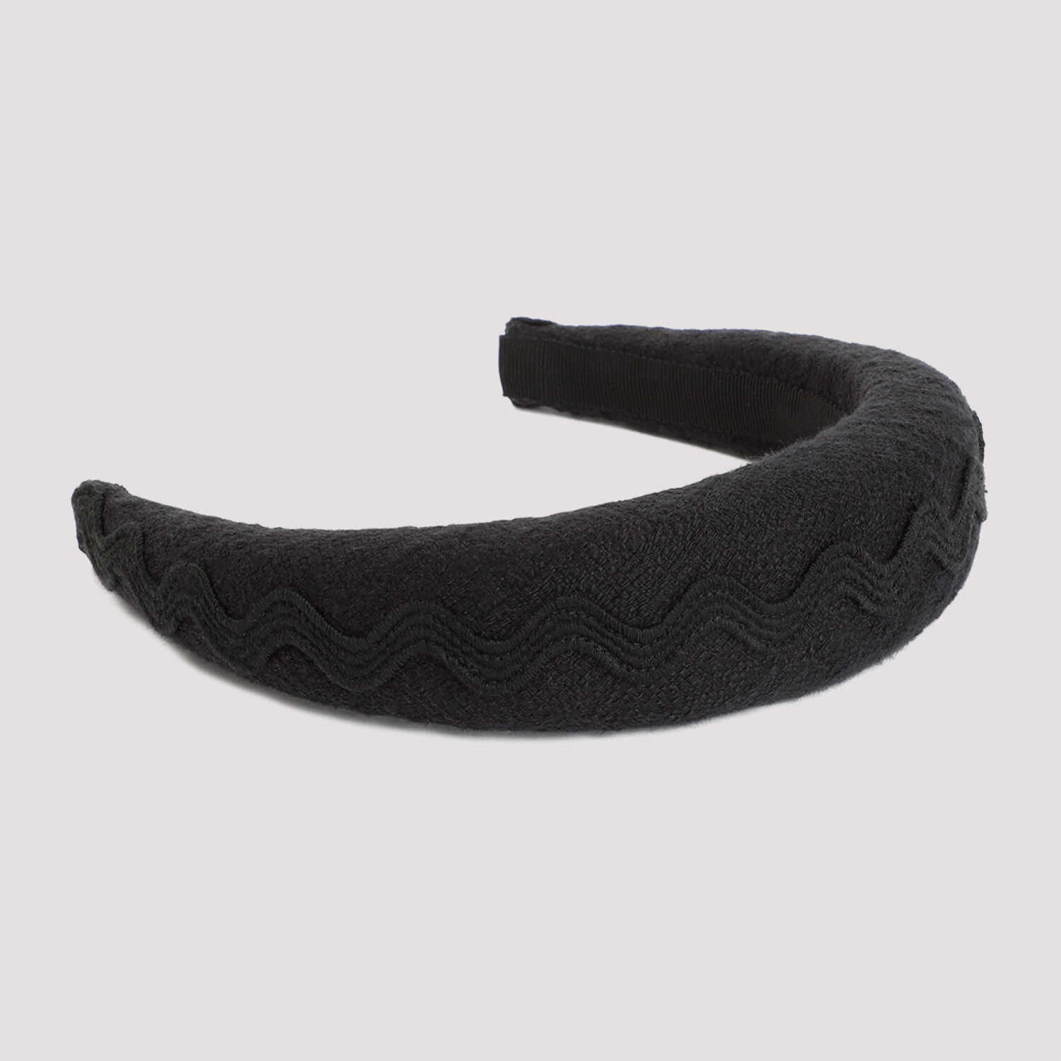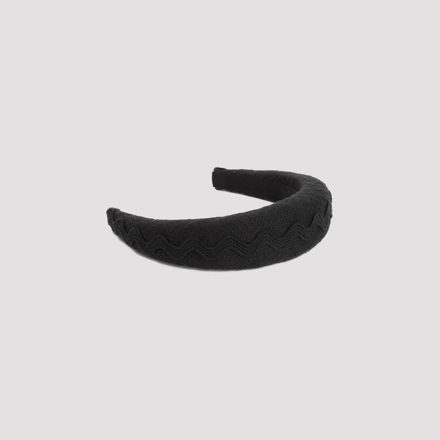 Patou Black Cotton Headband. Crafted in cotton and polyamide blend. Padded design, embossed embroidered waves on the top, logo label inside.
