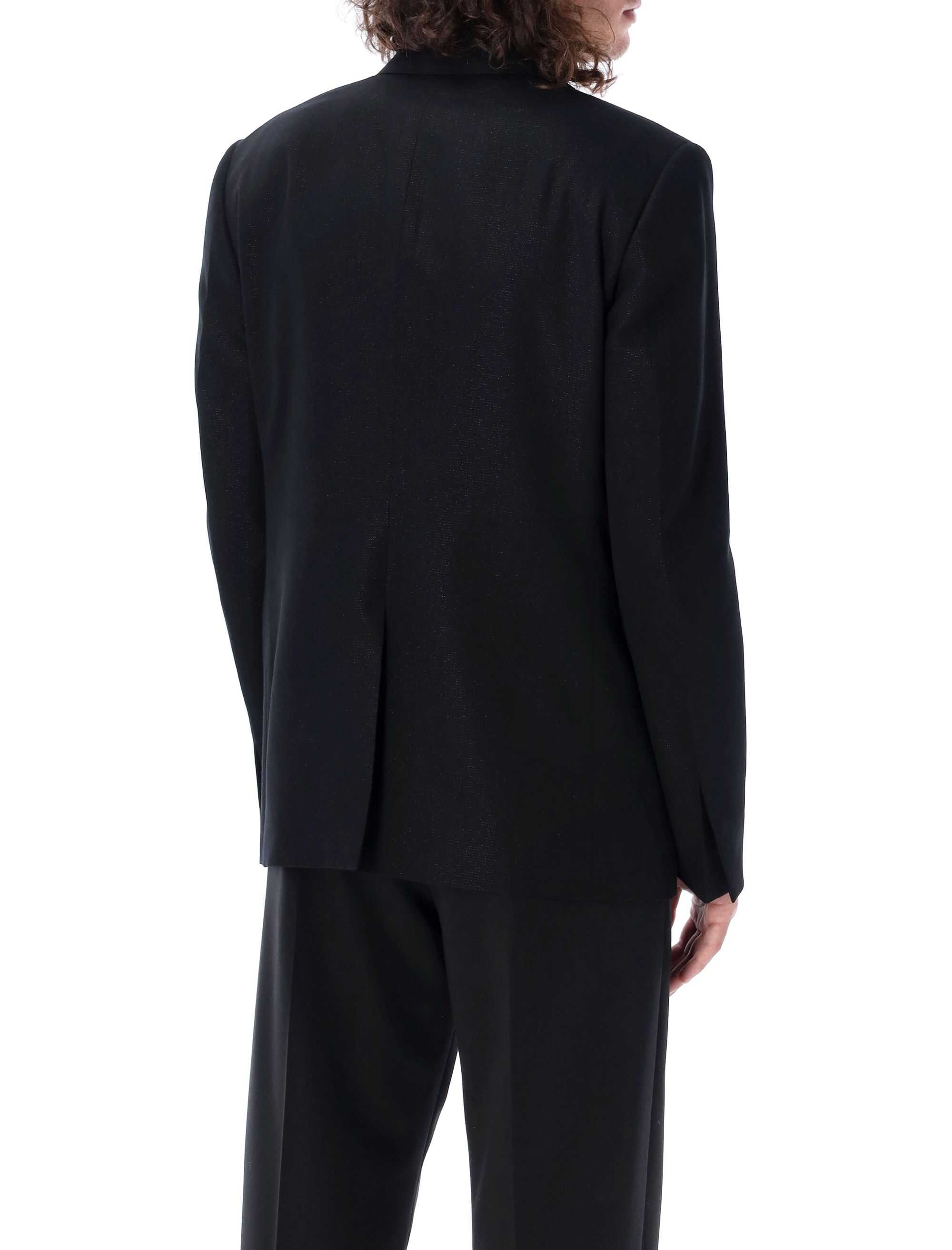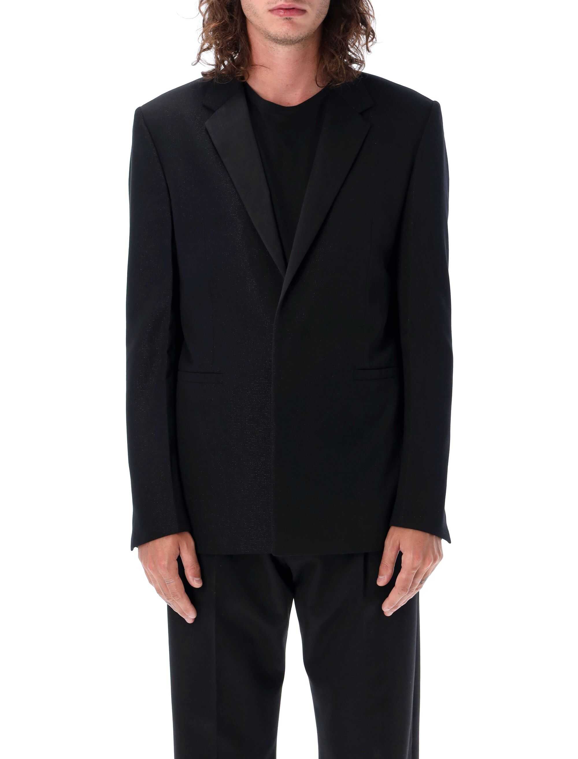 Stylish and sophisticated, this black Evening blazer by Givenchy is a must-have for any gentleman. Made from 100% virgin wool, it features a V-neck, concealed button closure, long sleeves with buttoned side slit, strong shouldered design, welt pockets, inner welt pocket, and a back vent. The model in the picture is 1,90 m tall and he is wearing size 50. Elevate your style with this exquisite blazer from the renowned brand GIVENCHY.