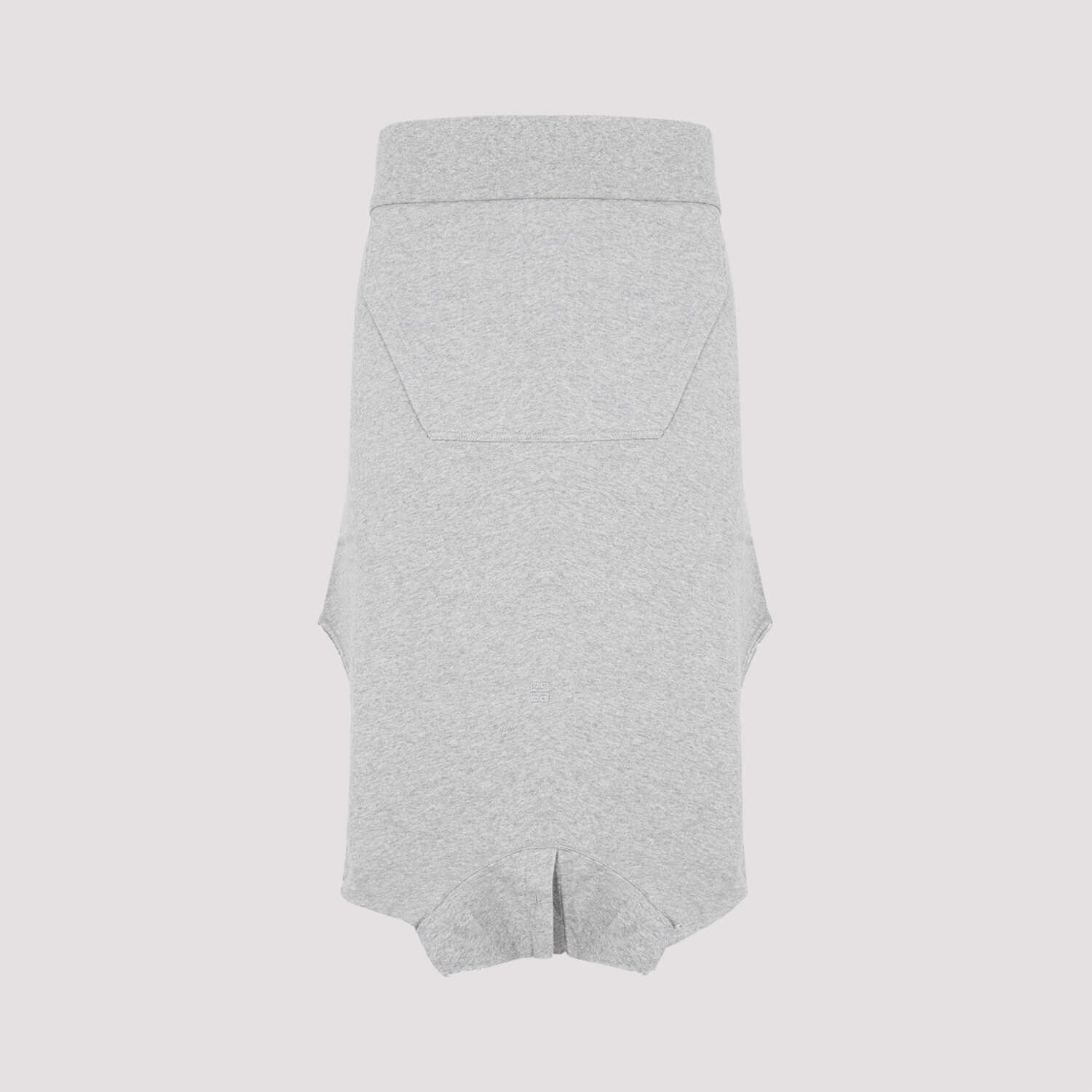 Givenchy Classic Fit Hoodie Light Grey Melange Cotton Skirt. Pure light grey melange cotton, reverse classic hoodie effect, elasticated ribbed hem on waistband, kangaroo pockets on front, fake hoodie on the hem.