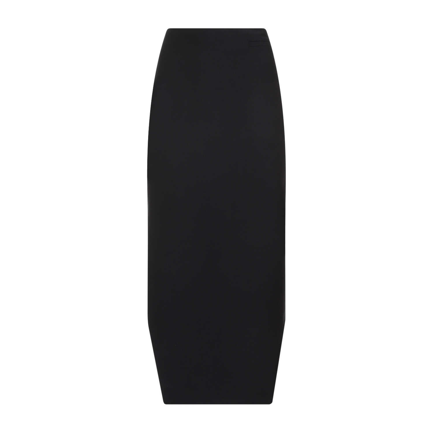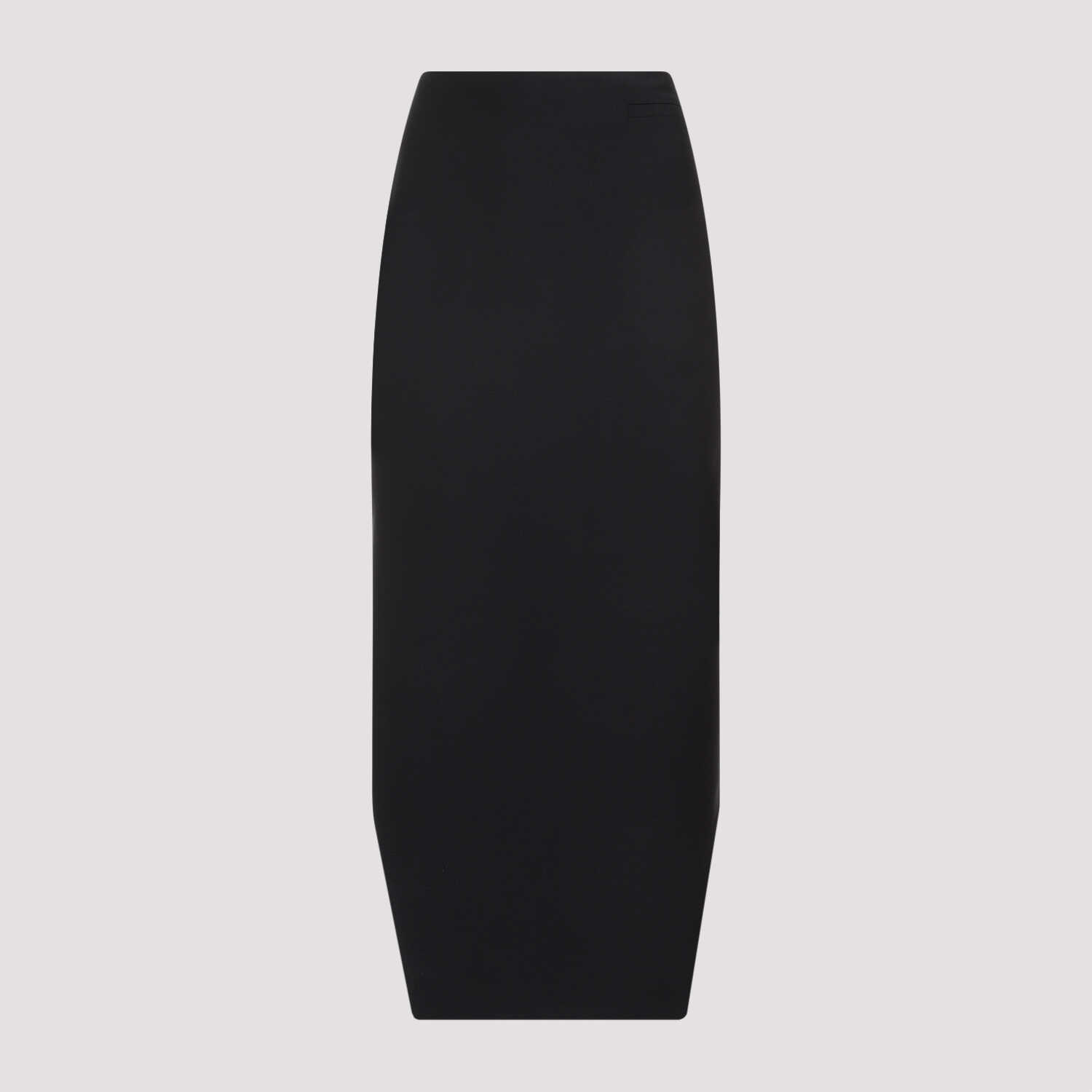 Givenchy Black Wool Front Kick Skirt. Crafted in wool and mohair blend. Side slit pocket, side concealing zipped fastening, front inserts, asymmetric hem.