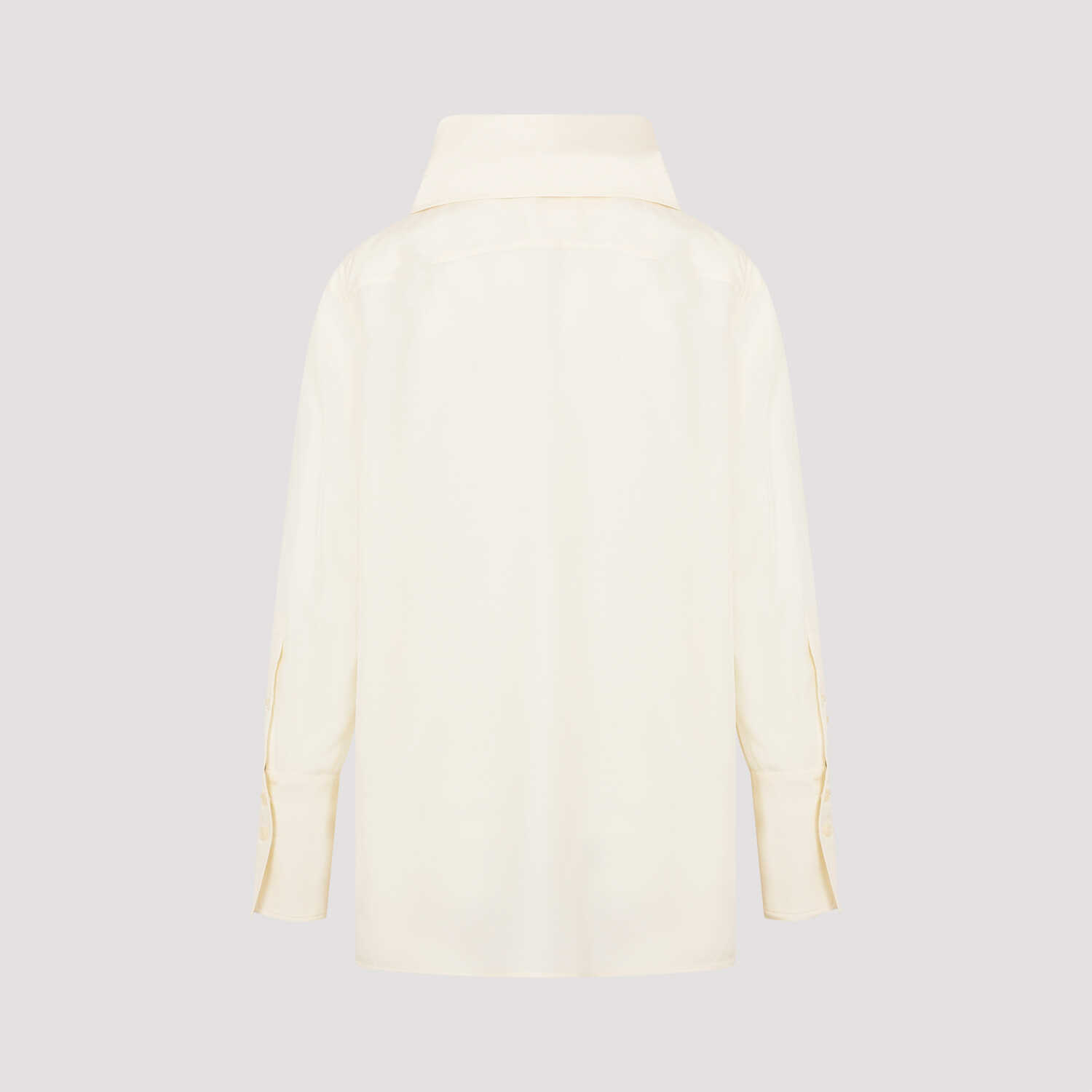 Givenchy White Cream Silk Foulard Blouse. Pure white cream silk, front slit with self-tie neck bow, long sleeves, buttoned cuffs, relaxed fit.