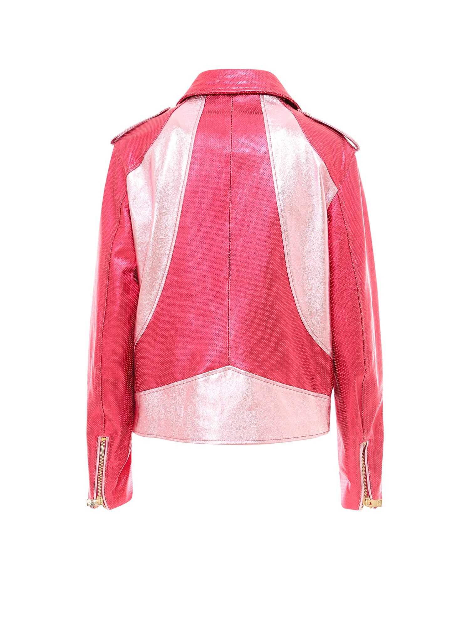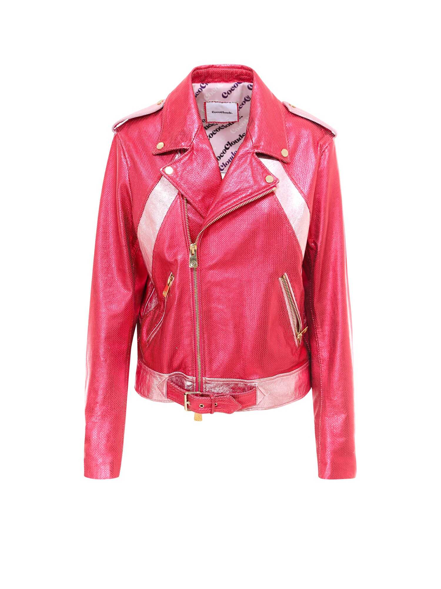 Be the talk of the town with this stunning metallised leather jacket from COCO CLOUDE. Made of 100% leather, it features a pink color with perforated leather, zip closure, and pockets with zip on the front for added style and convenience. The leather strap with metal buckle adds a touch of elegance to this jacket. The lining is made of 97% recycled polyester and 3% elastane. Available in IT size range. Upgrade your wardrobe with this trendy and chic jacket today!