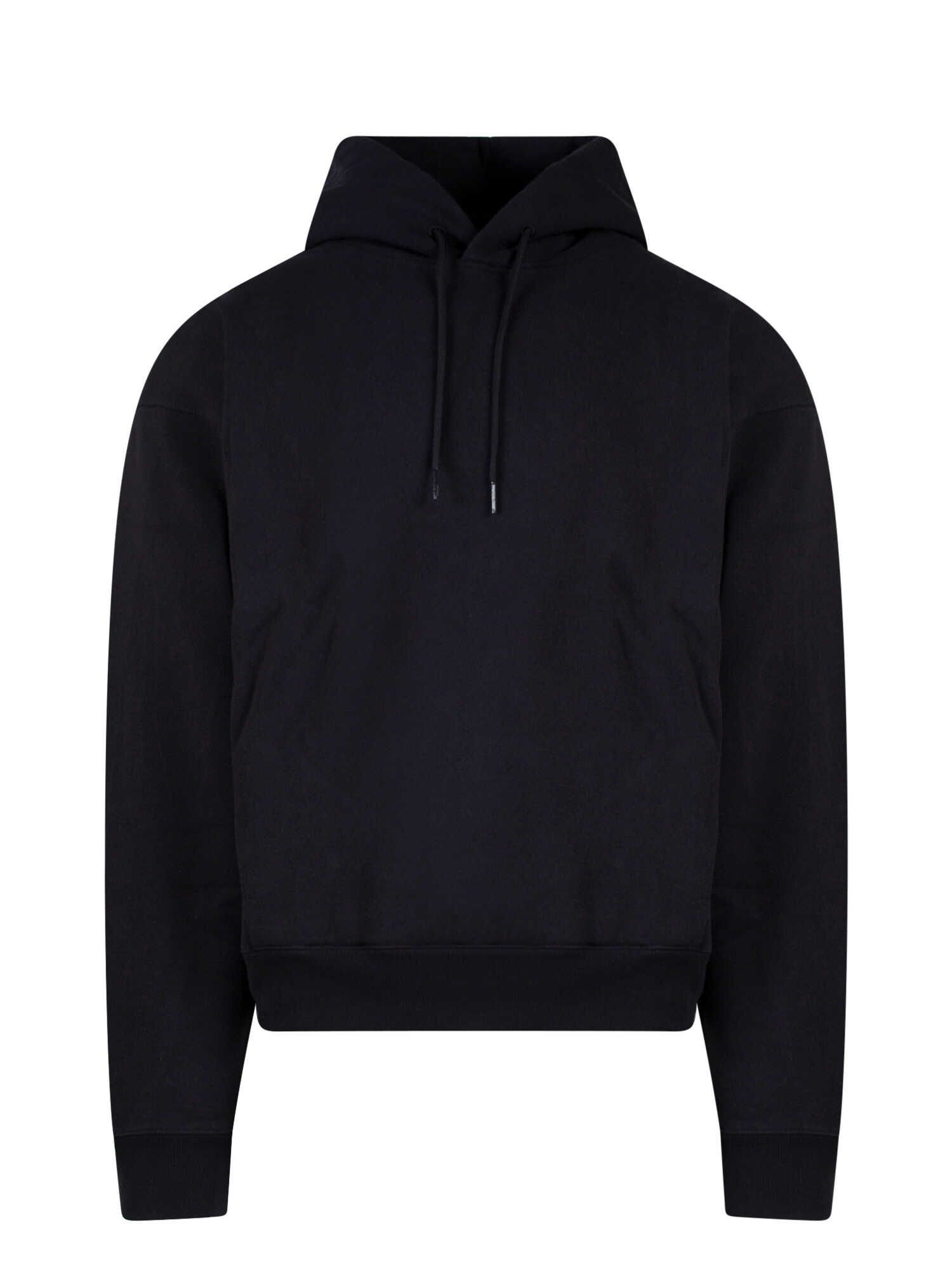 Stay comfortable and stylish in this black cotton sweatshirt with ribbed profiles from MARTINE ROSE. The adjustable drawstring hood, side pockets, and long sleeves make it perfect for any casual occasion. The print on the back adds a unique touch to the design. Made with 100% cotton, this sweatshirt is sure to keep you cozy. Available in a range of sizes. Order yours today!