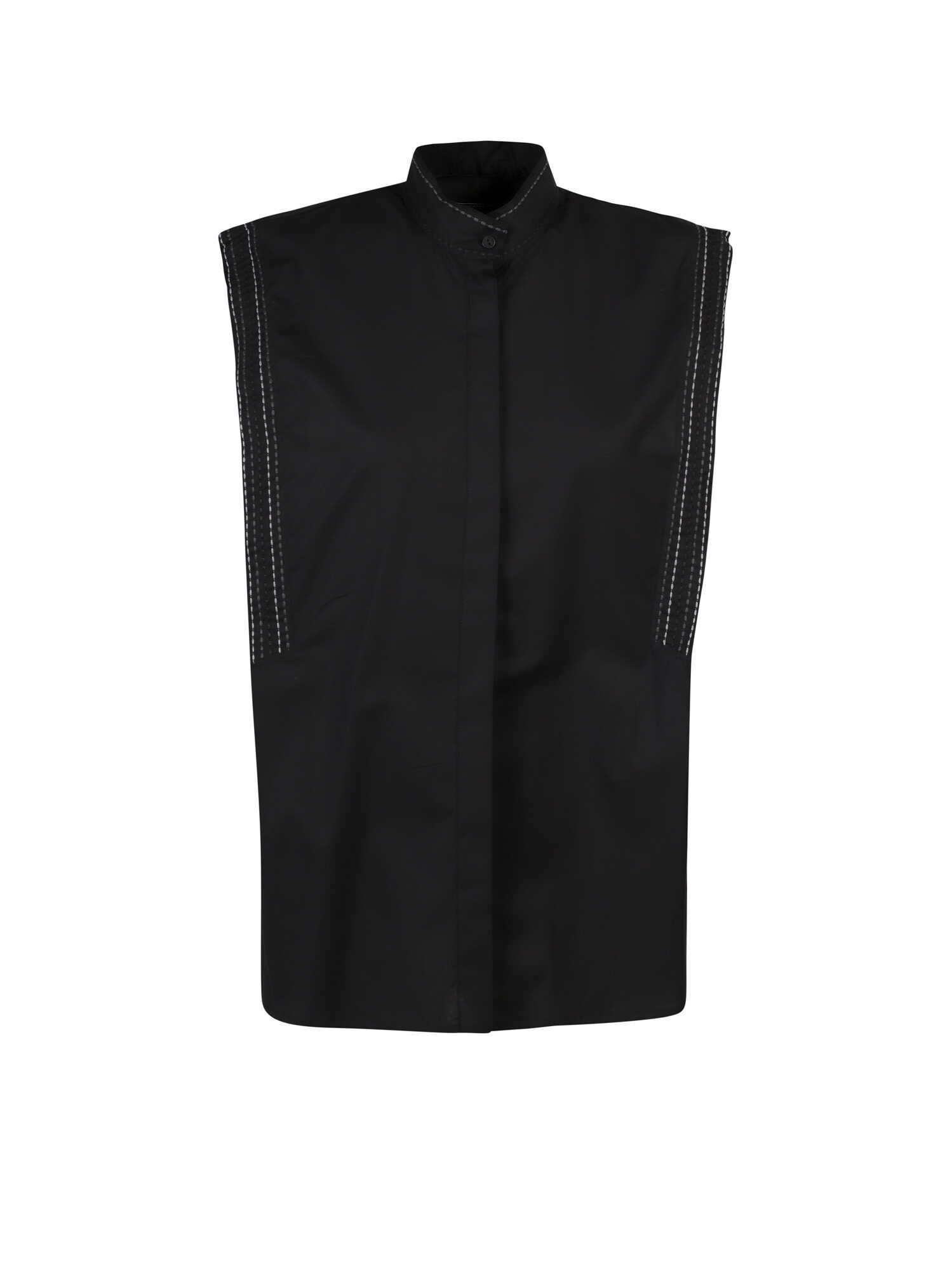 Get ready to turn heads with this stylish cotton shirt from DONDUP. Featuring a sleek black color and contrasting stitchings, this shirt is perfect for any occasion. The crew neck and sleeveless design provide a comfortable fit, while the covered button closure adds a touch of elegance. Made in Italy with 100% cotton material, this shirt is both durable and breathable. With a size range of IT and custom tariff of 62063000, this shirt is a must-have for any fashion-forward woman. Order yours today!