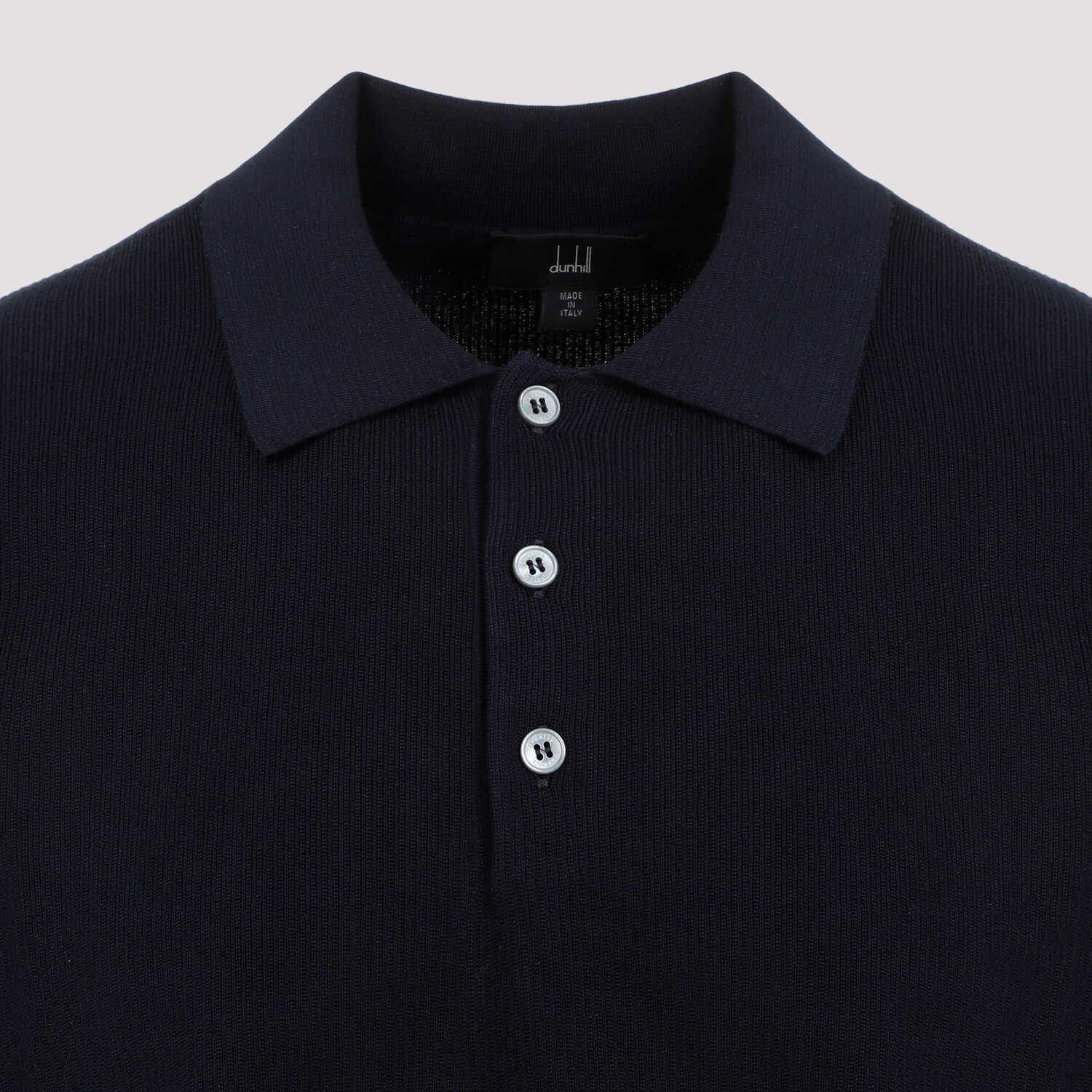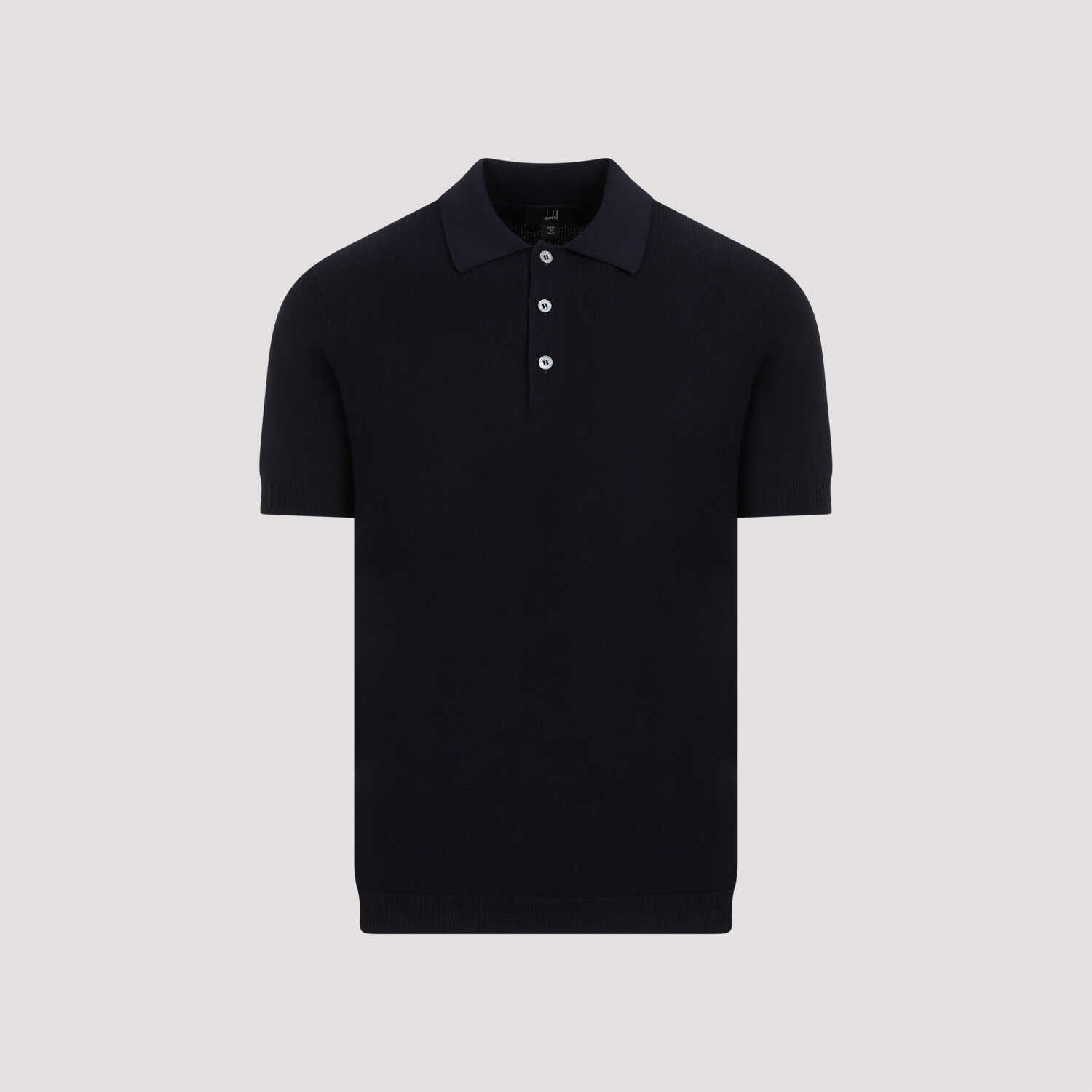 Dunhill Textured Ink Cotton Polo. Crafted in textured blue ink cotton, pointed collar, classic polo placket, short sleeves, fine ribbed hems.