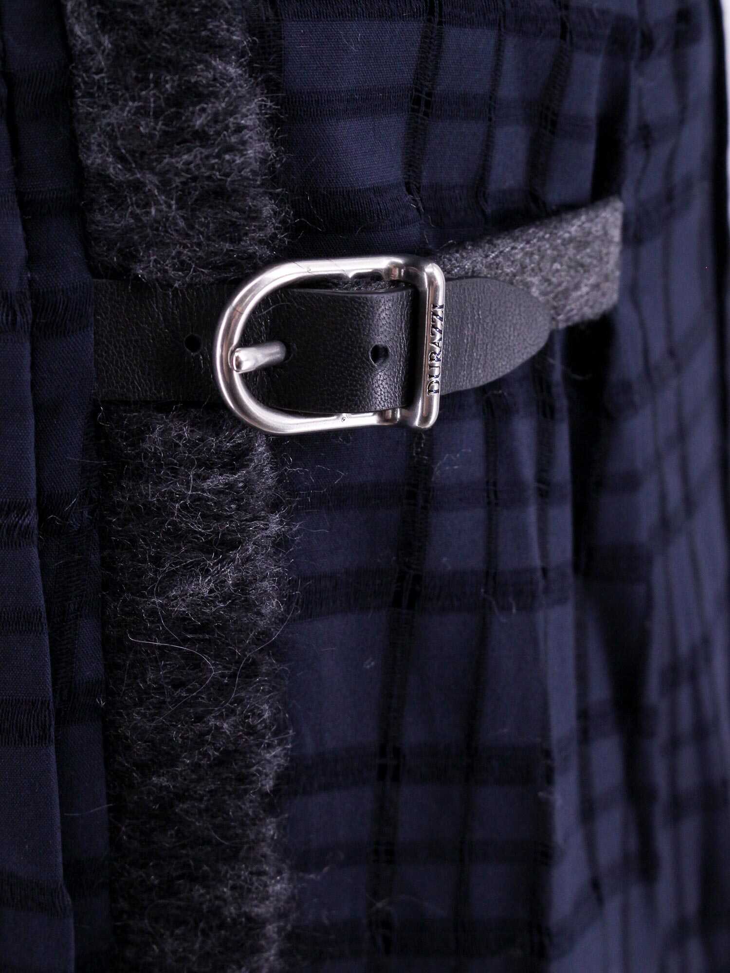 The Cotton Kilt in Blue by DURAZZI MILANO is a stylish skirt made with high-quality materials. It features a wrap closure, leather straps with metal buckles, and frayed wool profiles for a unique look. Made in Italy, this skirt is 98% cotton and 2% elastane, providing comfort and flexibility. The lining is made of 55% cotton and 45% cupro. It is perfect for women who want to make a fashion statement. Get yours now and elevate your wardrobe!