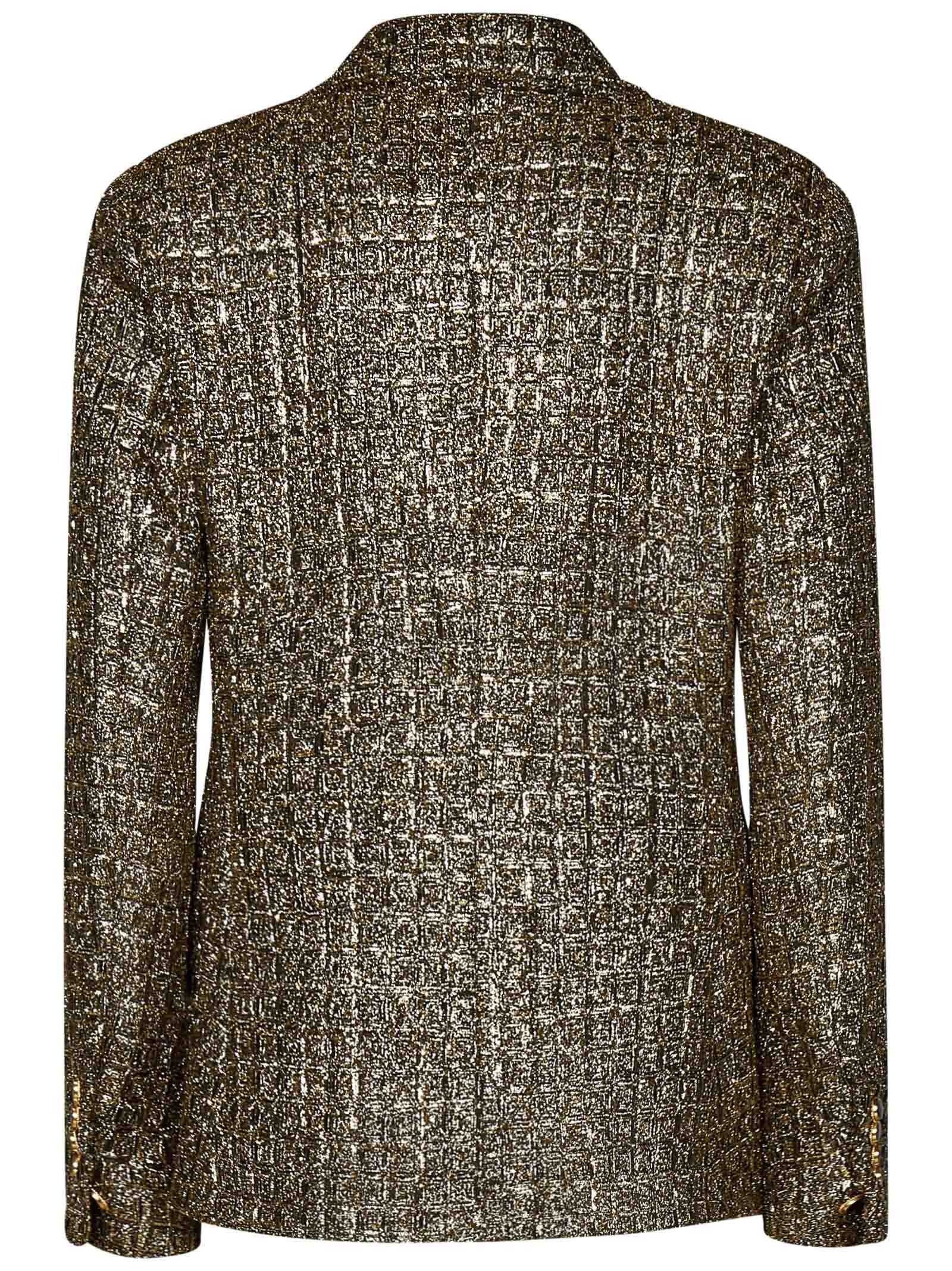Single-breasted blazer in metallic gold LOLA tweed with jewel buttons.