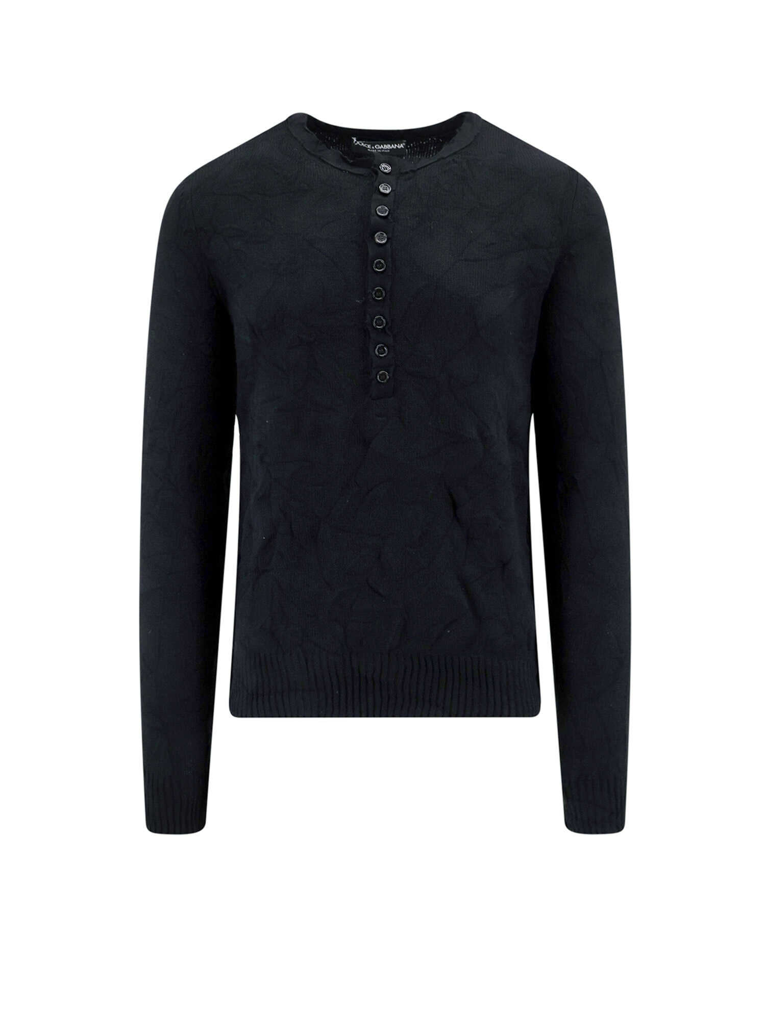 The Re-Edition wool sweater by DOLCE & GABBANA is a stylish addition to your wardrobe. With its black color, crew-neck with buttons, long sleeves with cuffs, and crinkled wool material, this sweater exudes sophistication. Made in Italy, it is crafted with 70% wool, 20% polyamide, and 10% virgin wool. Perfect for men looking for high-quality knitwear, this sweater is a must-have. Order now and experience luxury fashion at its finest.