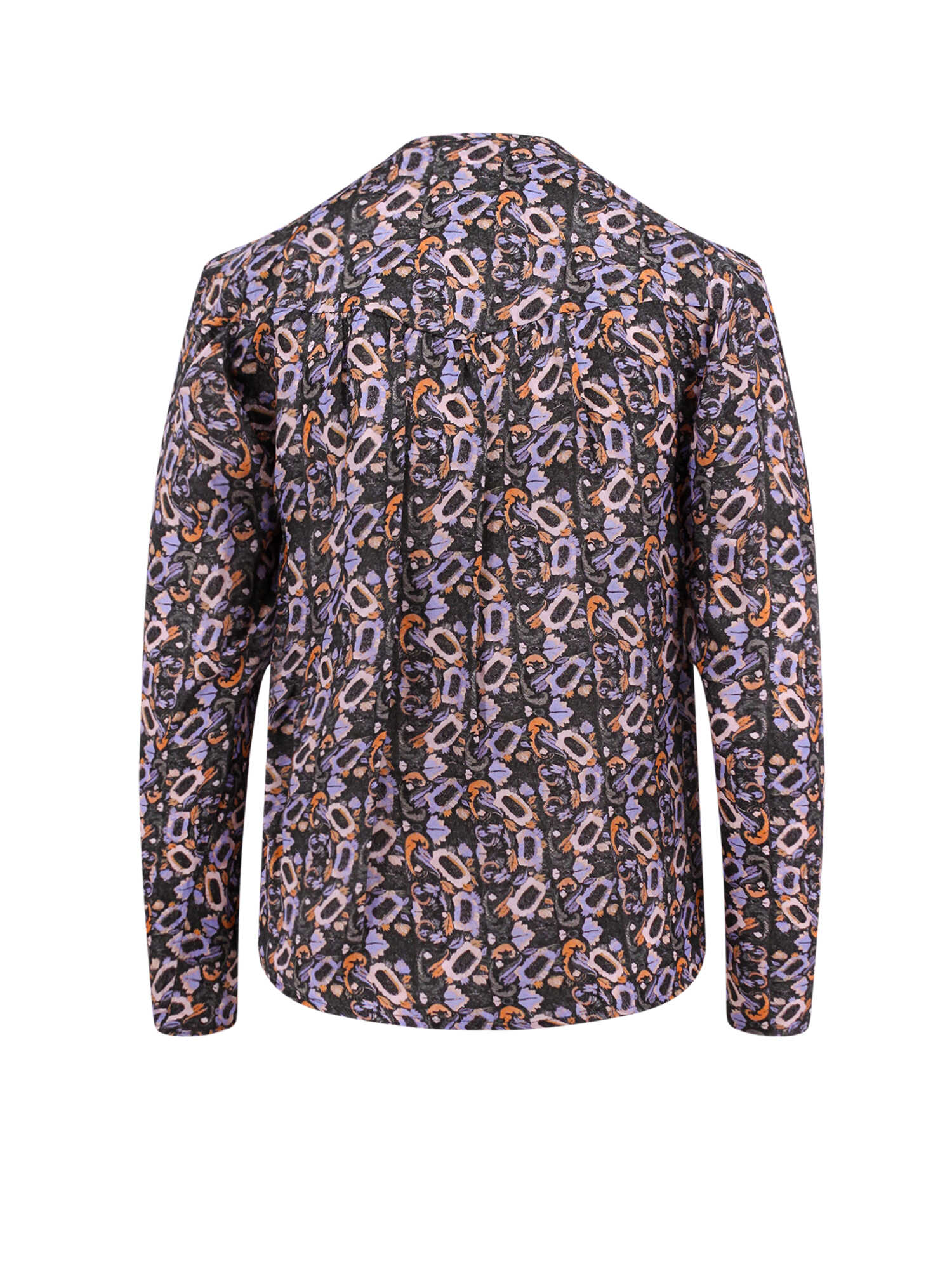 Hidden closure with automatic buttons, Balloon long sleeve, Crew-neck with double automatic button, Rounded bottom, 65% viscose 35% silk