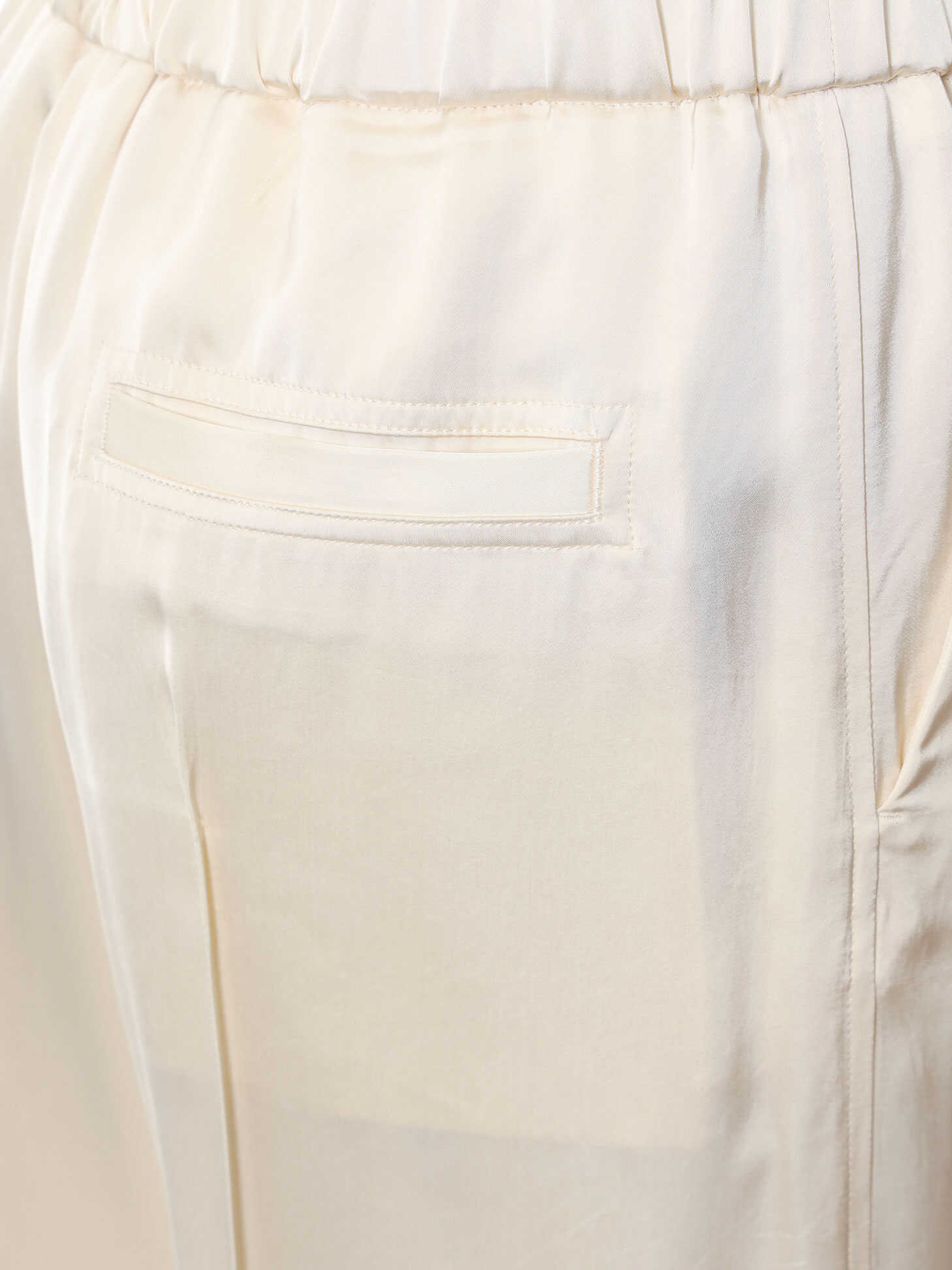 Elastic waistband, Lateral slant pockets, Partially lined, made in Italy, 100% viscose