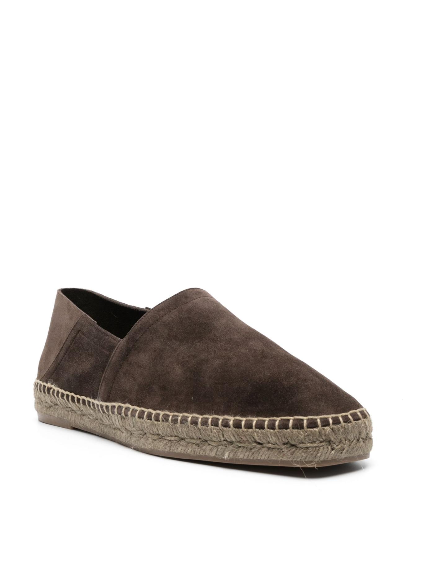 TOM FORD's affinity for timeless elegance is captured in these casual espadrilles. Its soft suede square-toe silhouette contrasts with the braided raffia sole.