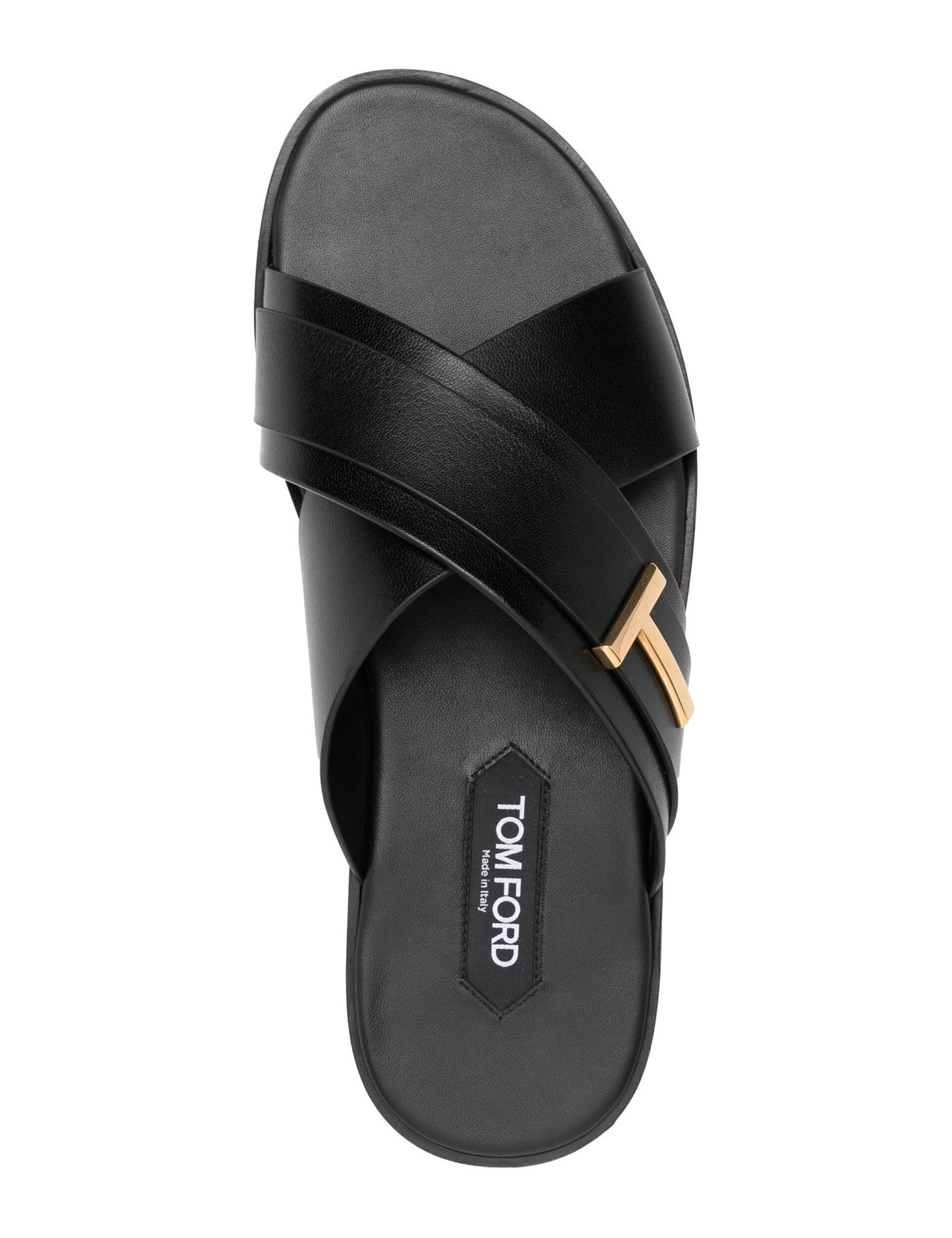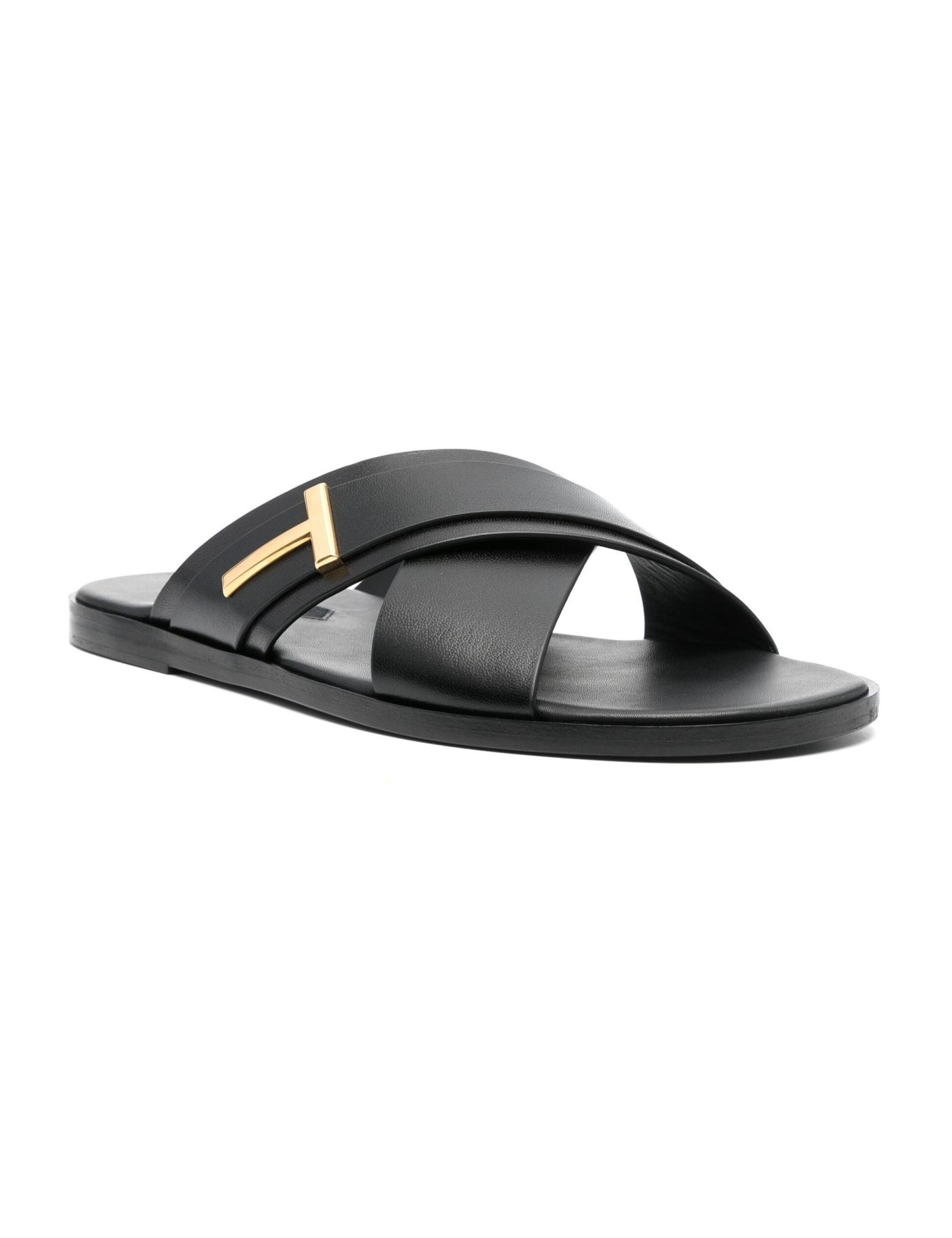 TOM FORD offers a branded take on the classic slides. Crafted from leather, this pair is decorated with a gold-tone T logo on the side for instant recognition.