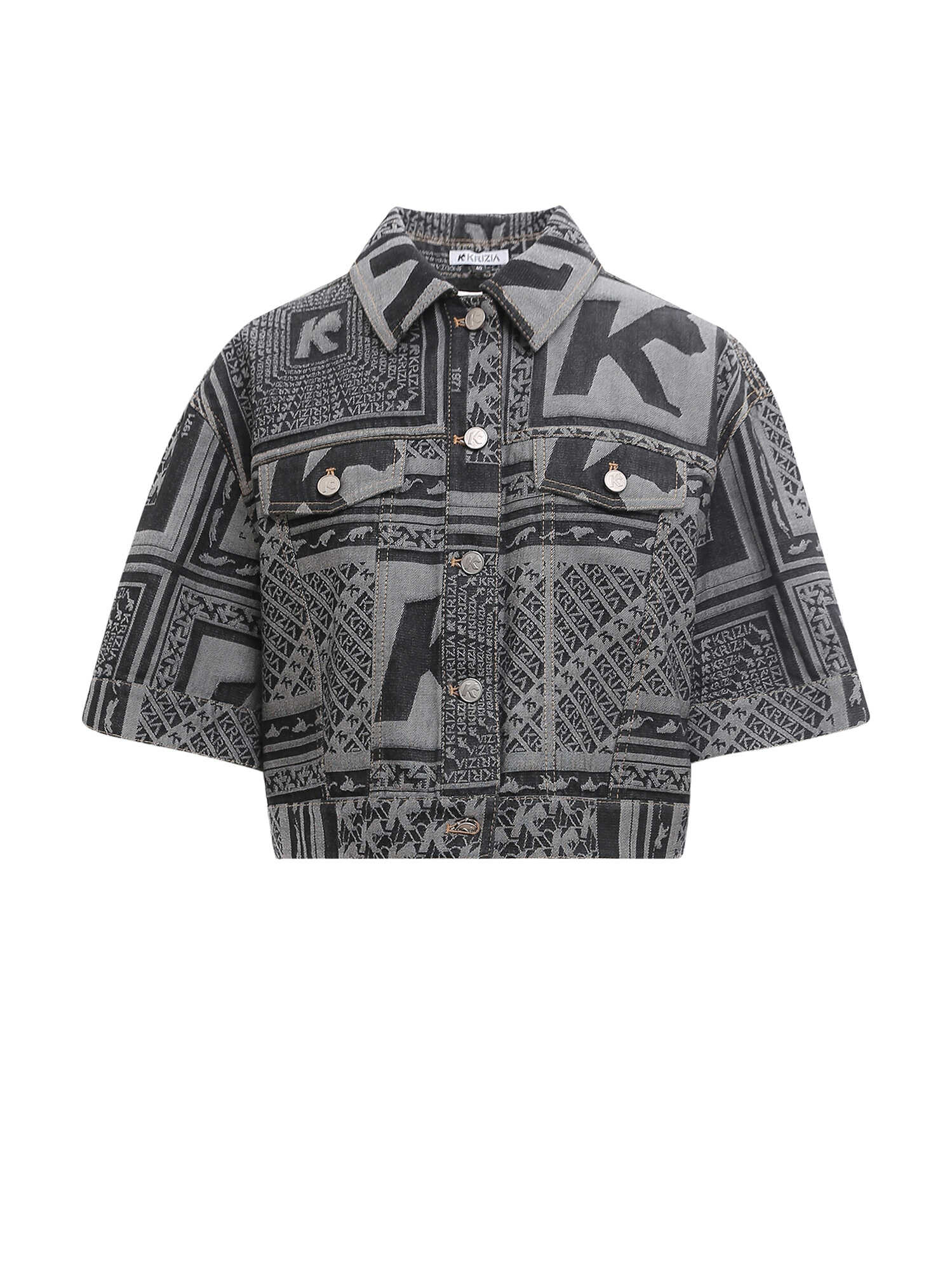 Get ready to rock this stylish Cotton Jacket with Short Sleeves from K KRIZIA. Made from 100% pure cotton material, it features a sleek grey design with closure buttons and breast pockets with flaps. The all-over logo and stitched profiles add to its appeal. Perfect for women who want to stay fashionable while keeping comfortable. Available in IT size range. Order now!