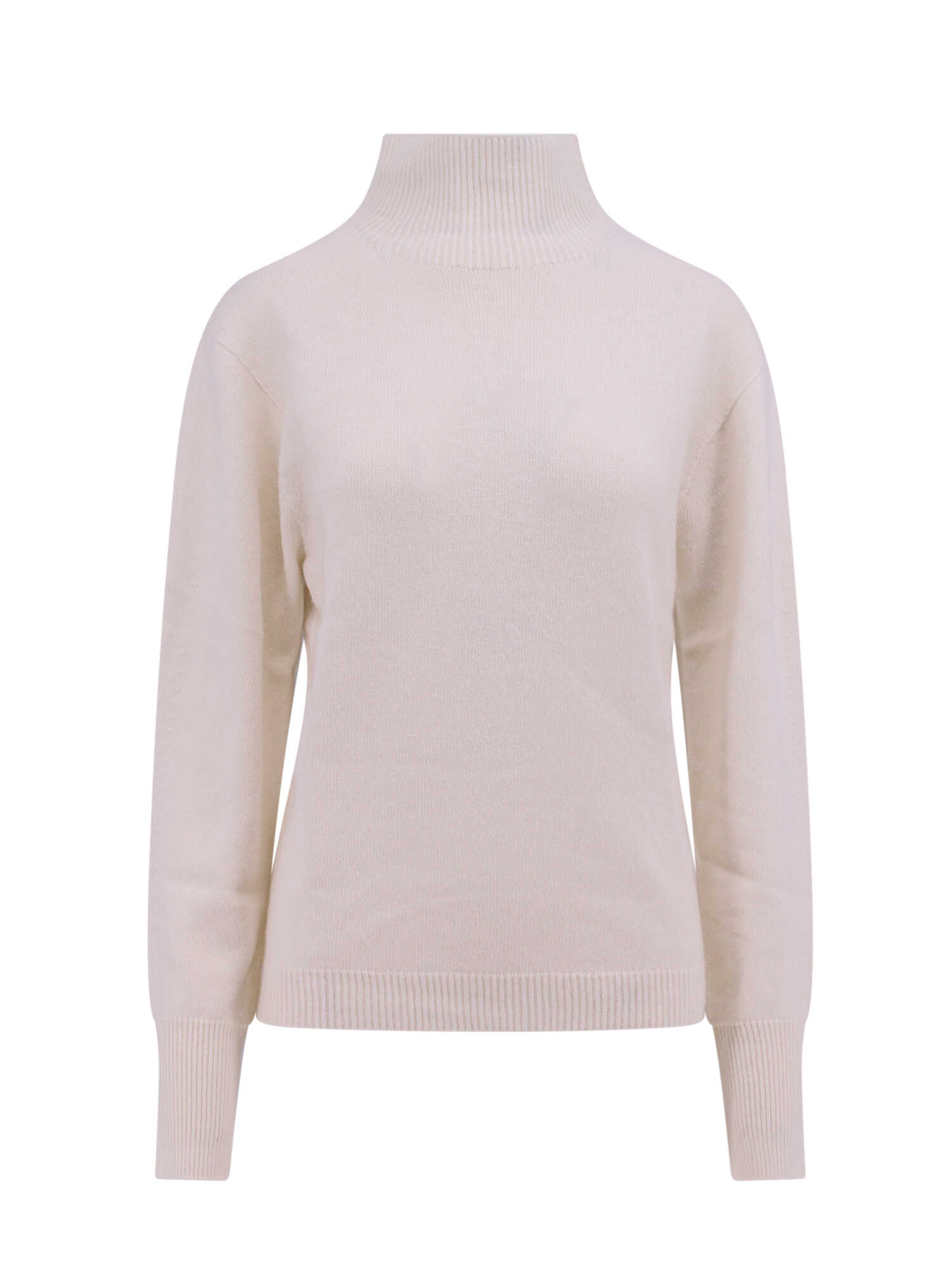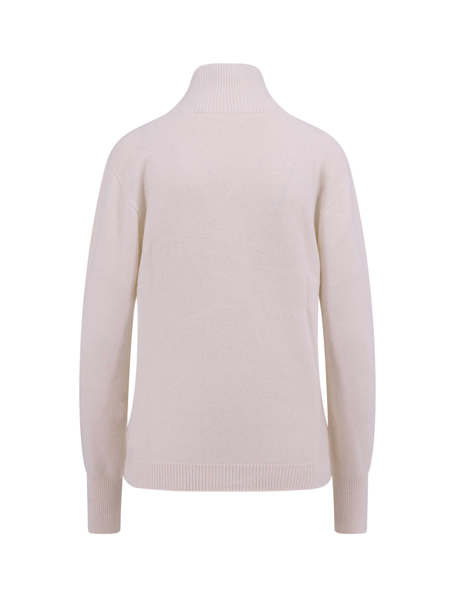 Stay cozy and stylish with this white Wool blend turtleneck sweater. It features a high neck, long sleeves with cuff, ribbed profiles, and stitched details. Made from a luxurious blend of 55% nylon, 40% wool, and 5% cashmere. Perfect for any occasion. Order now!