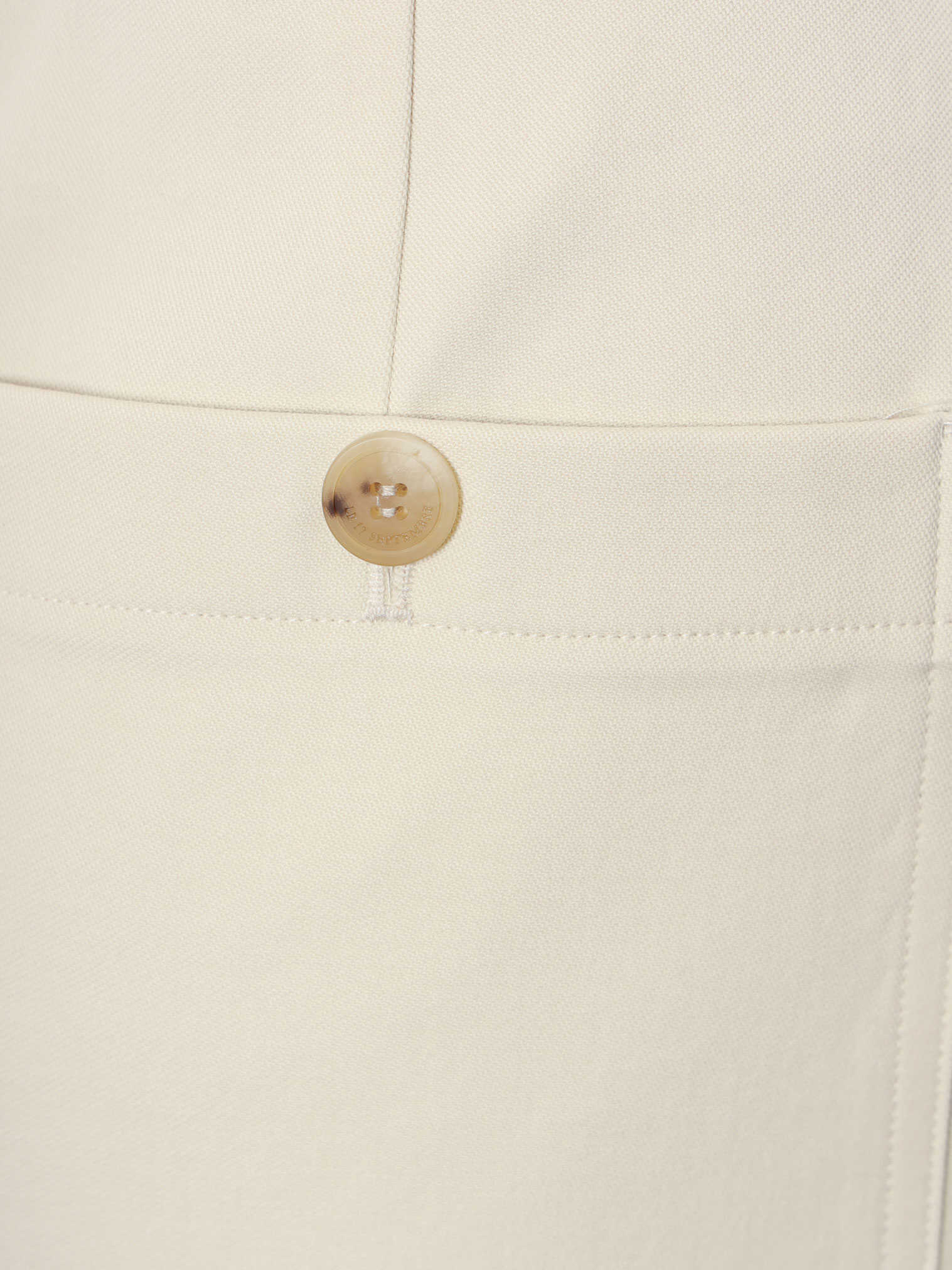 Closure with hook and adjustable strap, frontal slant pockets, One back pocket, Wide leg, 97% cotton 3% polyurethane