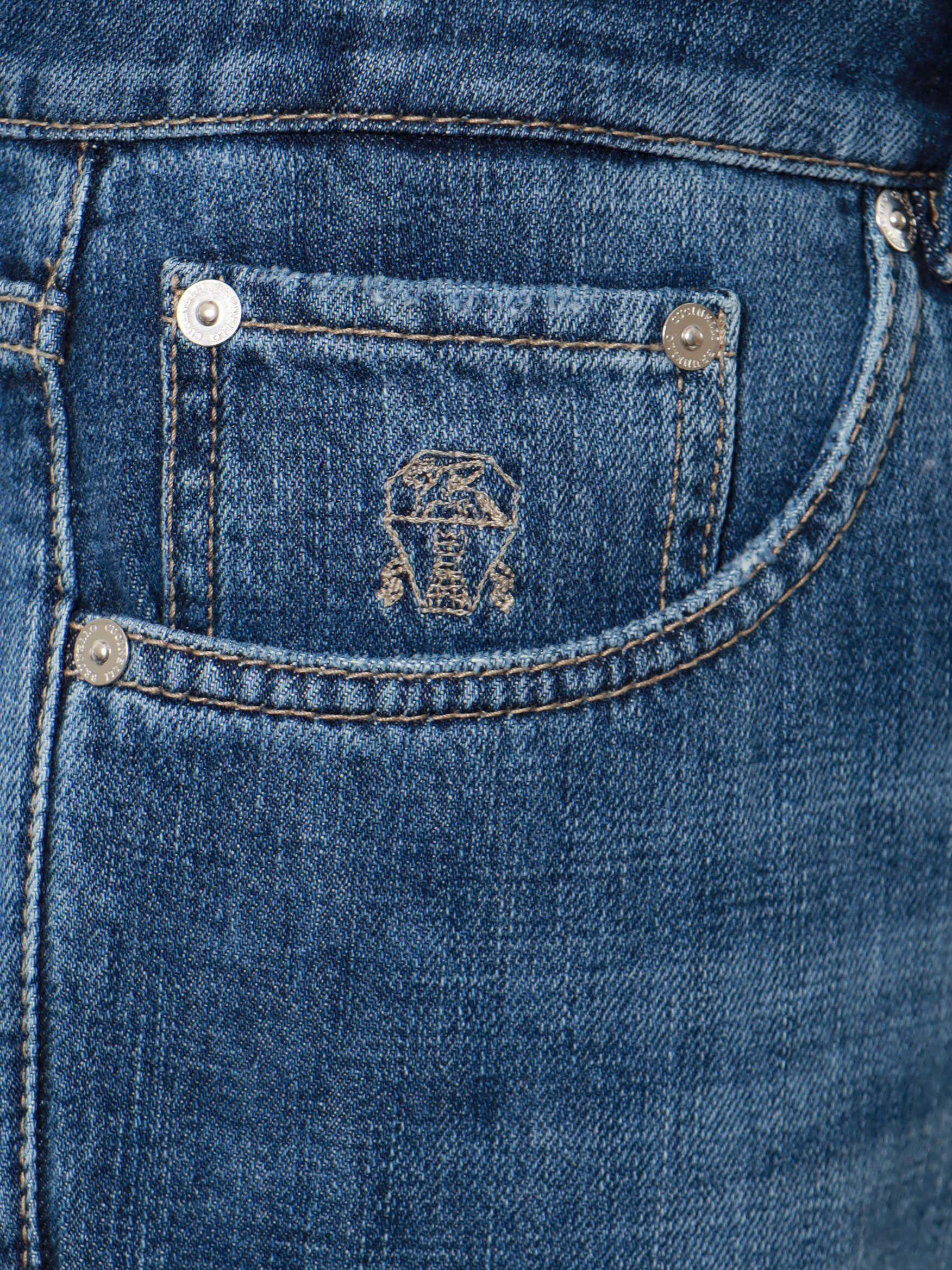 Closure with silver metal buttons, Five pockets, Logo embroidery, Made in Italy, 100% cotton