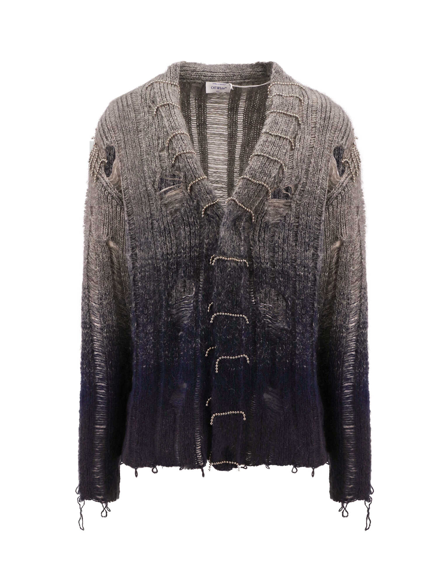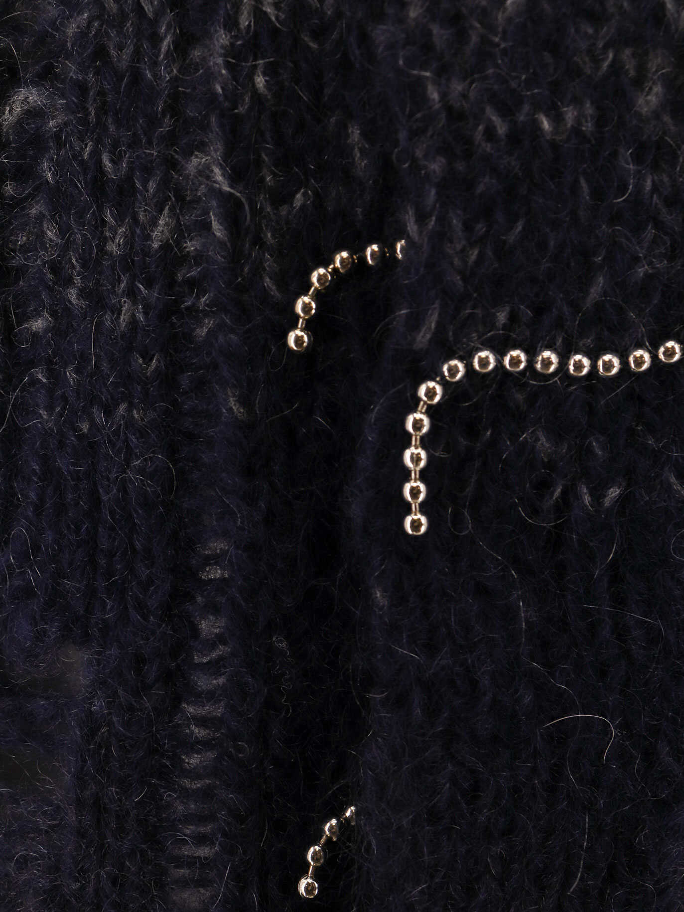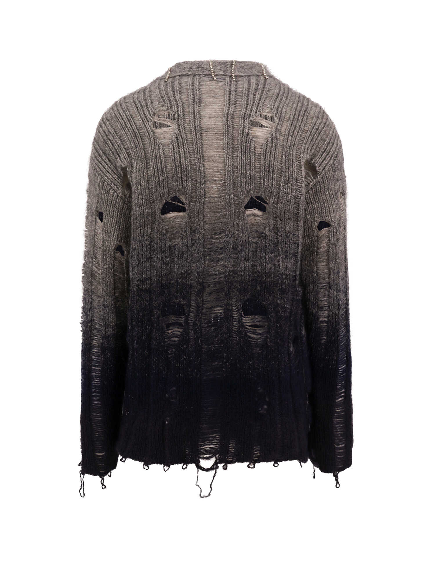 Closure with metal details, V-neckline and long sleeves, Destroyed effect, Made in Italy, 53% mohair 31% polyamide 16% wool