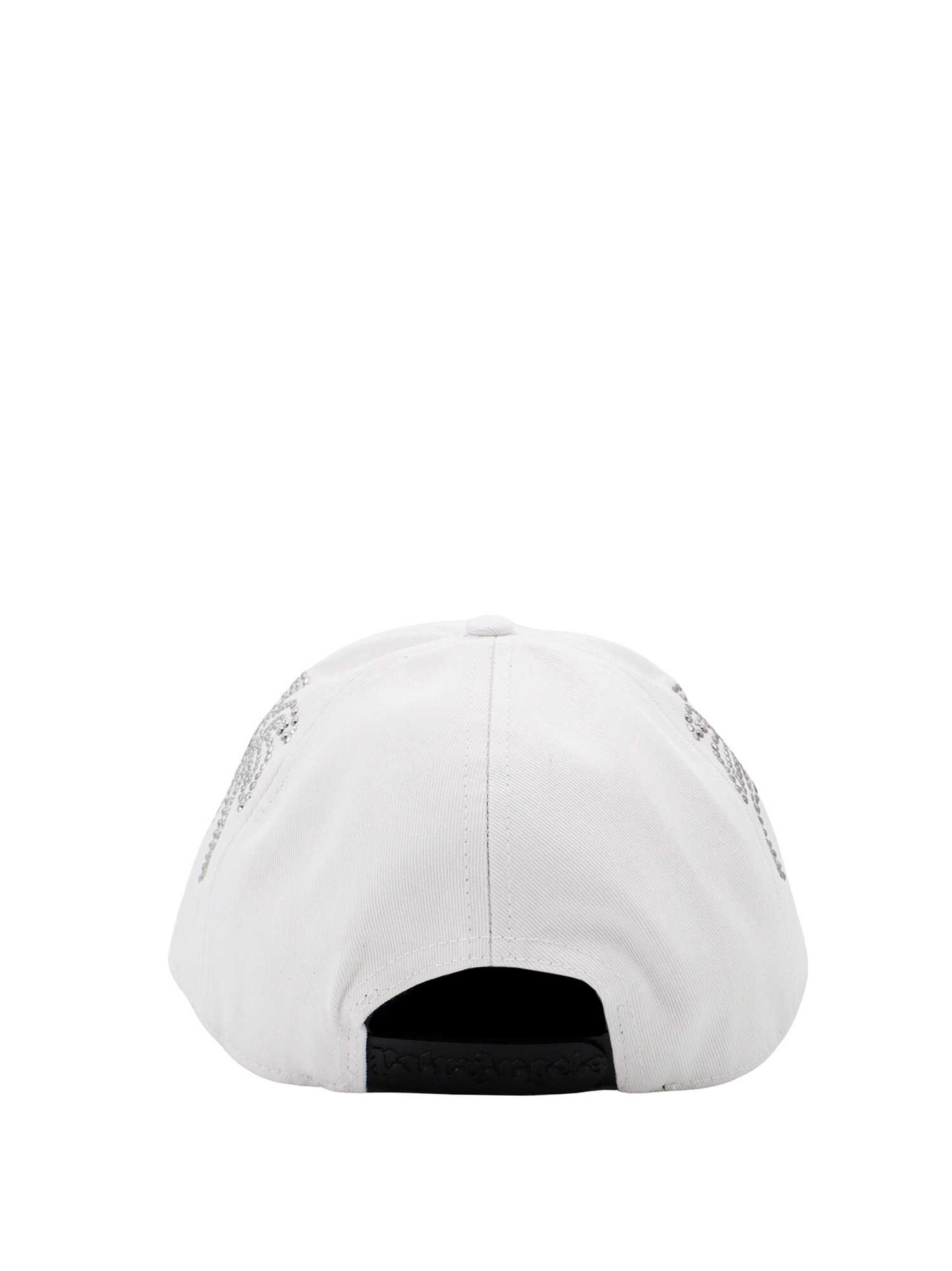 Stitched visor, Adjustable rubber strap on the back, Iconic details with rhinestones, Lined, 100% Cotton