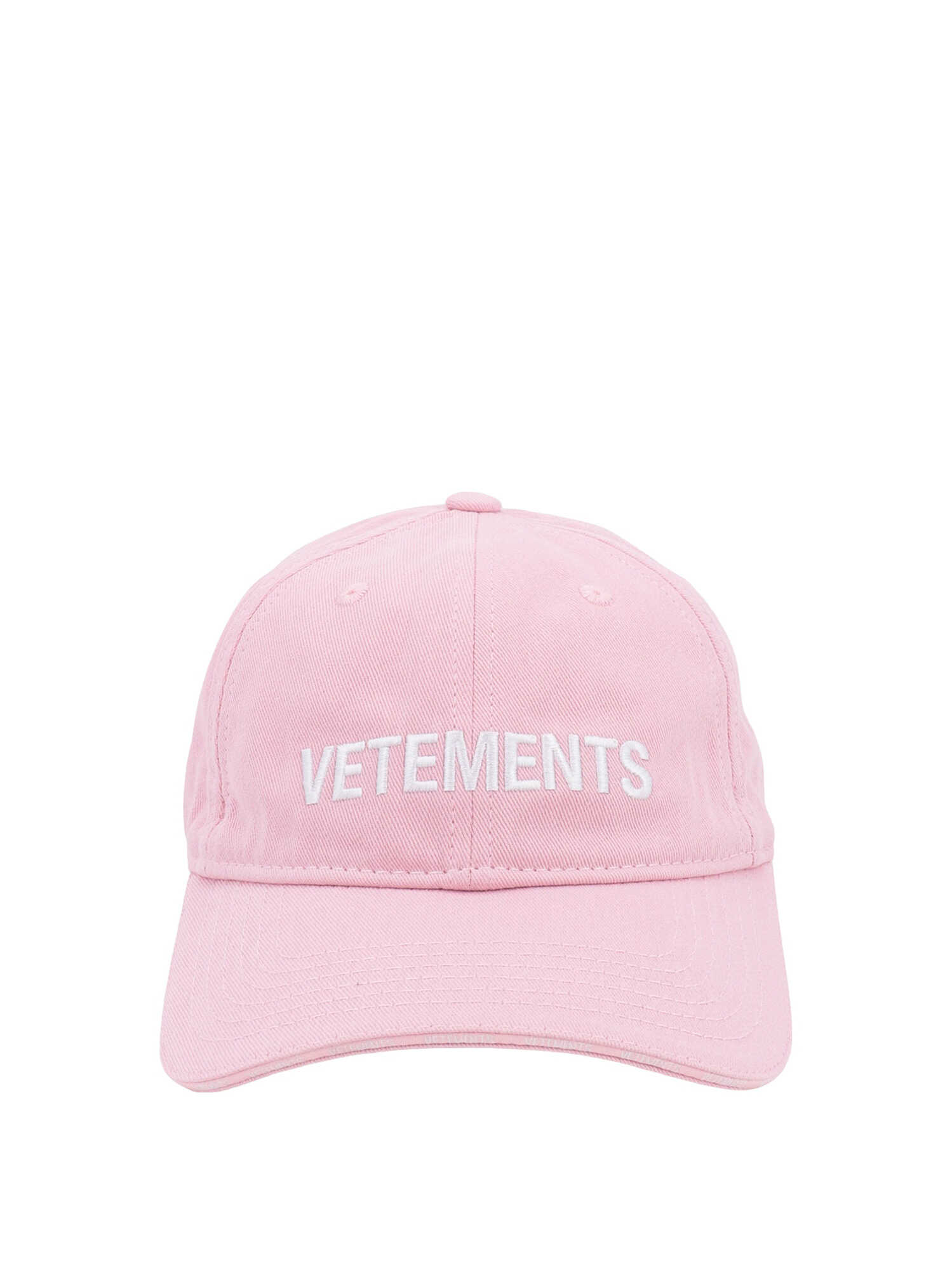 Looking for a stylish and comfortable hat? This pink cotton hat from VETEMENTS is perfect for you. Featuring a back adjustable strap, frontal embroidered logo, and stitched profiles, this hat is both functional and fashionable. Made from 100% cotton, it's soft and breathable, making it ideal for all-day wear. Whether you're running errands or hanging out with friends, this hat is sure to become your go-to accessory. Get yours today!