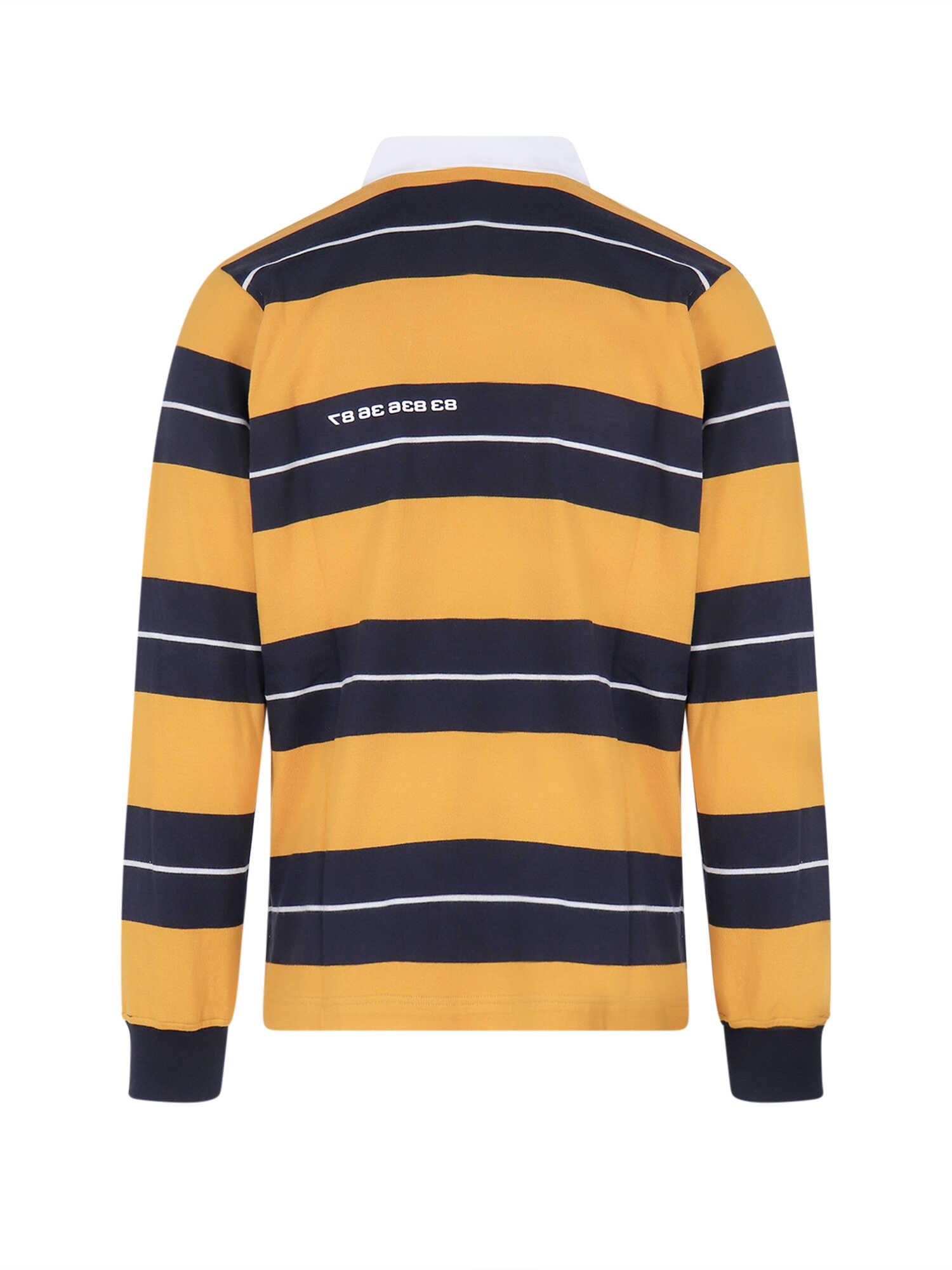 Upgrade your wardrobe with this stylish Cotton Polo Shirt from VTMNTS. Featuring a classic yellow color, this shirt boasts a contrasting collar, three covered buttons, and a frontal logo patch. Made in Italy from 100% cotton, it offers comfort and durability. The striped motif adds extra style to this versatile shirt. Perfect for any occasion, this polo shirt is a must-have for any fashion-forward man. Size range: LETTERS. Custom Tariff: 61051000.