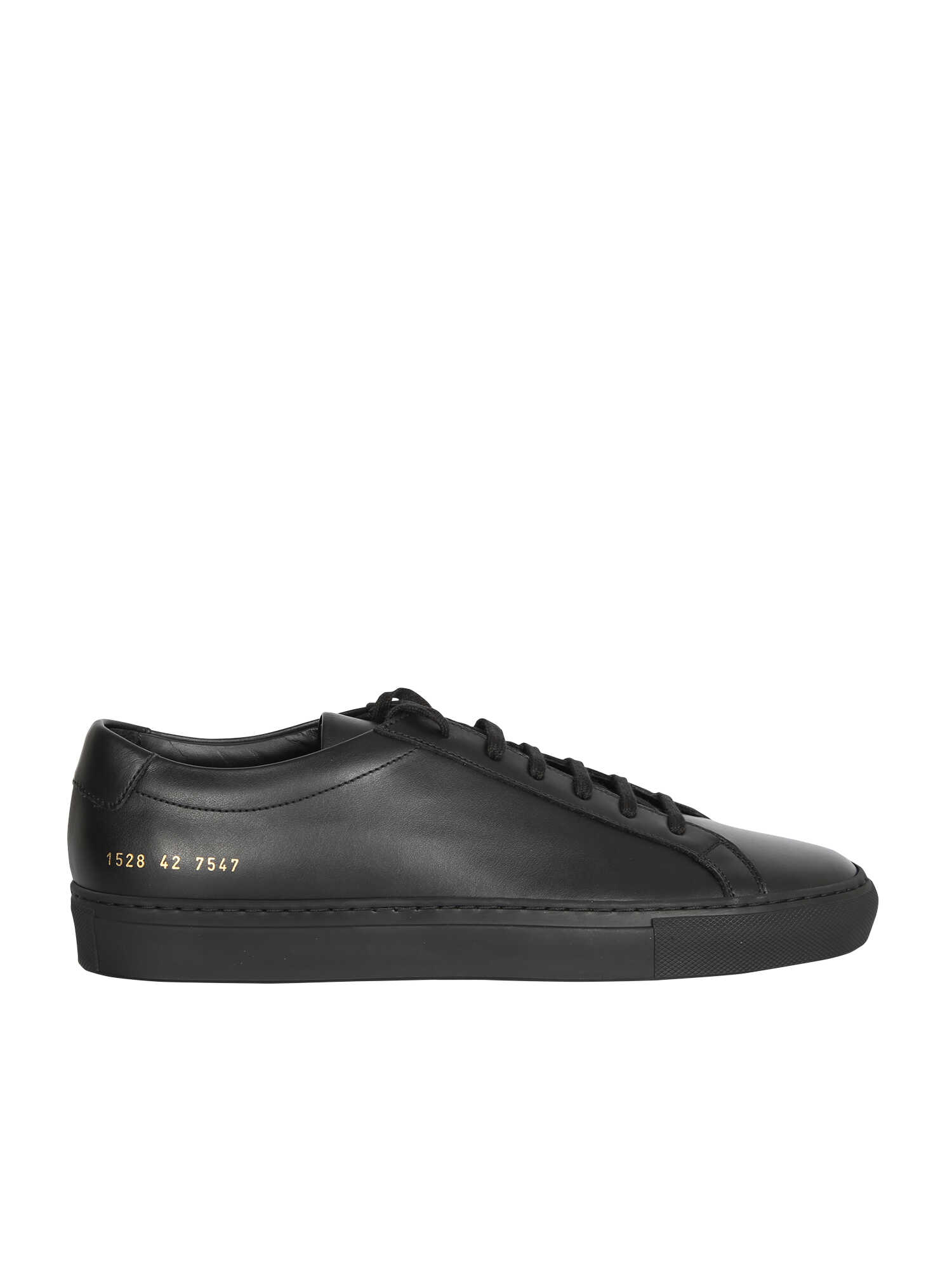 Experience the epitome of style with our COMMON PROJECTS Black Sneakers. Made from 100% Leather, these Achilles leather sneakers feature a lace-up design and leather inner for ultimate comfort. The rubber soles provide excellent traction, and they are proudly made in Italy. Perfect for men who value quality and fashion. Shop now!