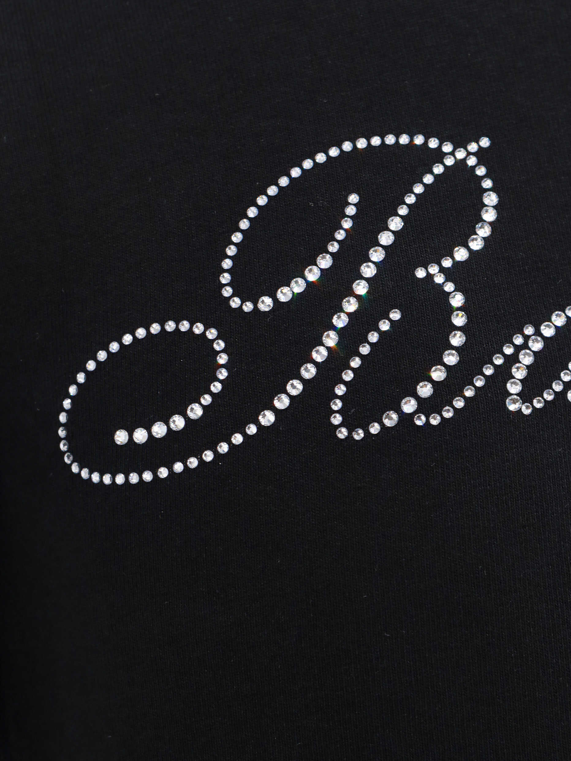 Crew-neck, Ribbed profile, Short sleeve, Balenciaga print with rhinestones, 95% cotton 5% elastane