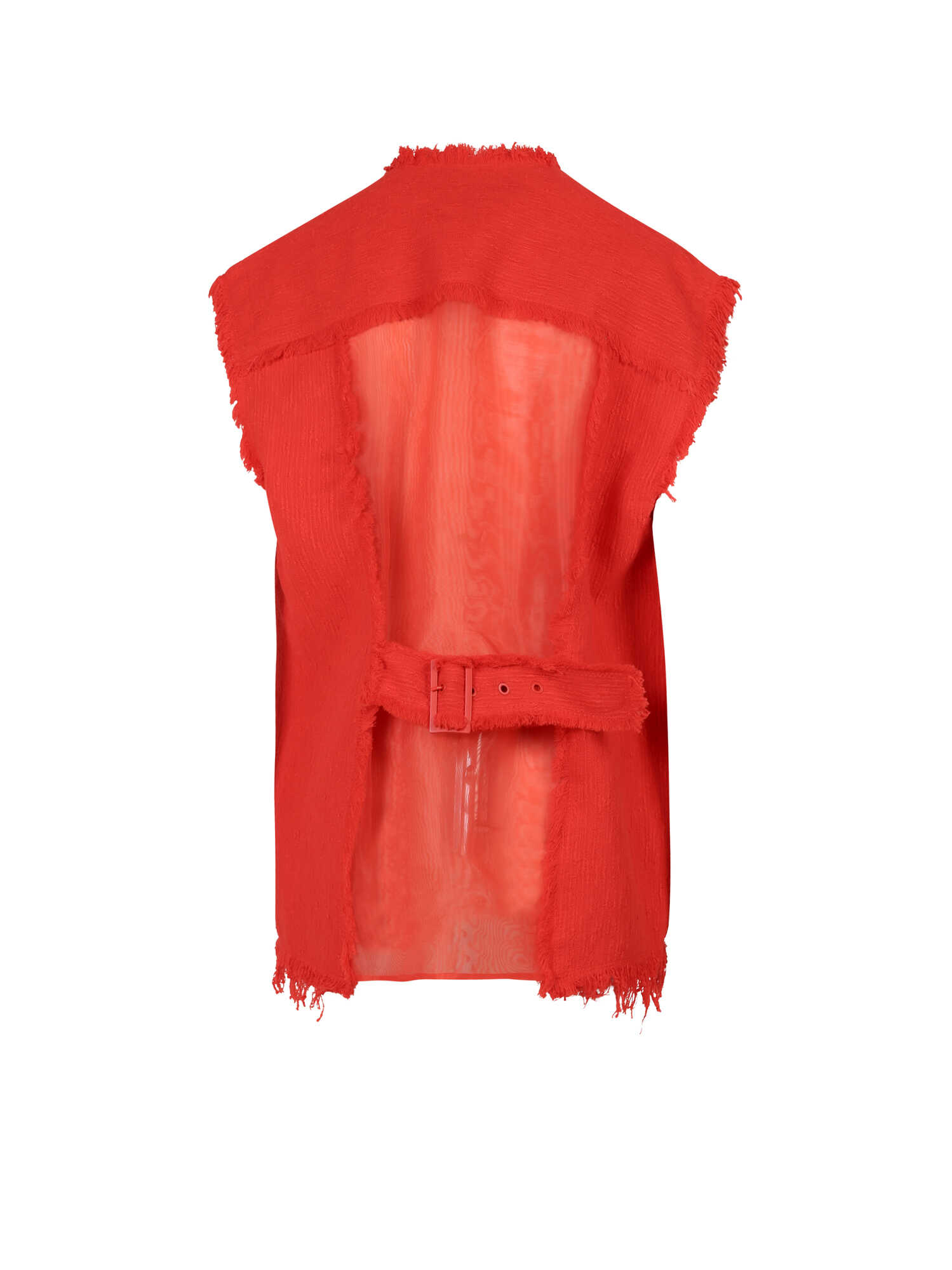 Look stylish and sophisticated in this stunning Tweed vest with frayed profiles from K KRIZIA. The V-neckline and frontal pockets with logoed buttons add a touch of elegance to your outfit, while the back belt and nylon insert provide ultimate comfort. Made from 95.7% cotton and 4.3% polyester, this blazer is perfect for any occasion. Available in various sizes. Order now and elevate your wardrobe today!