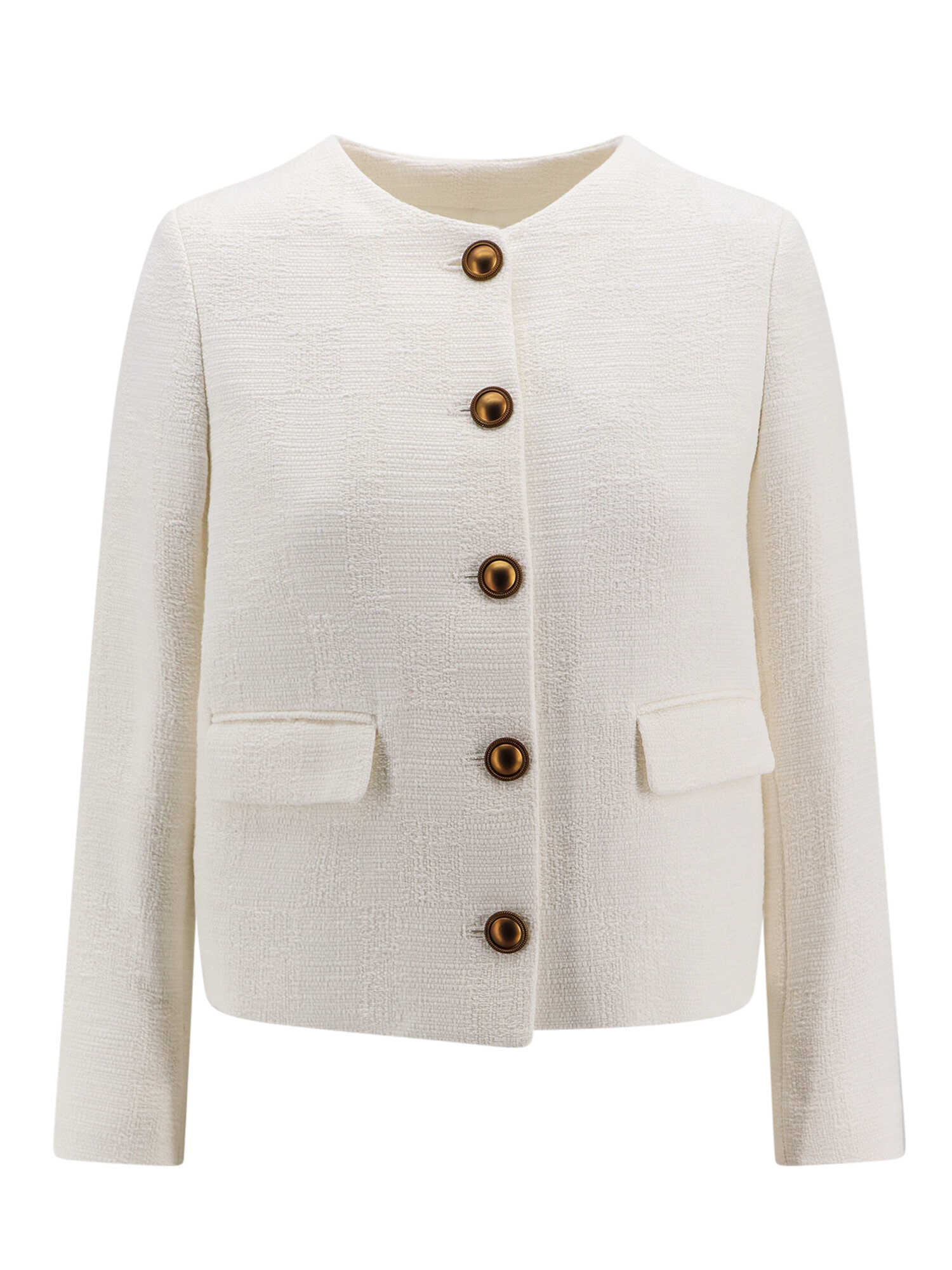 Crew-neck, Closure with gold metal buttons, Two frontal pockets with flap, Made in Italy, 100% Cotton