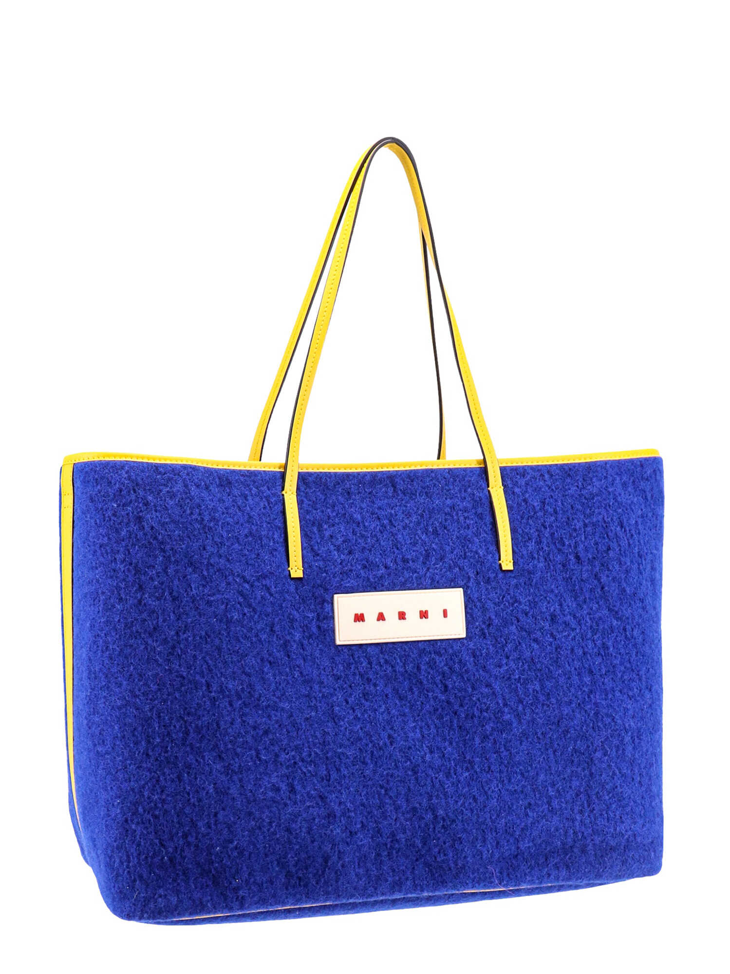 Leather handles and profiles, Internal pocket with zip, Lining with multicolor print, made in Italy, 66% wool 36% polyester