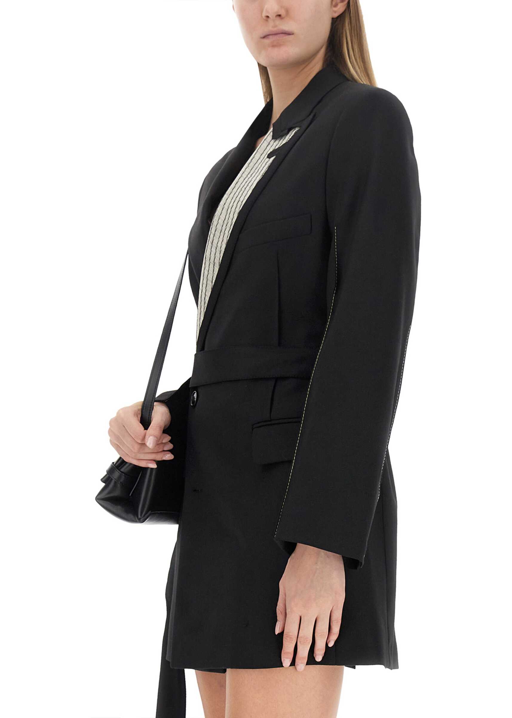 - 53% POLYESTER, 43% VIRGIN WOOL, 4% ELASTANE / LINING: 100% VISCOSE / LINING 2: 70% COTTON, 30% POLYAMIDE / BUTTON: 100% POLYESTER / TRIM: 100% BRASS- MADE IN Portugal- THE MODEL IS 180 CM TALL AND WEARS SIZE 8 UK