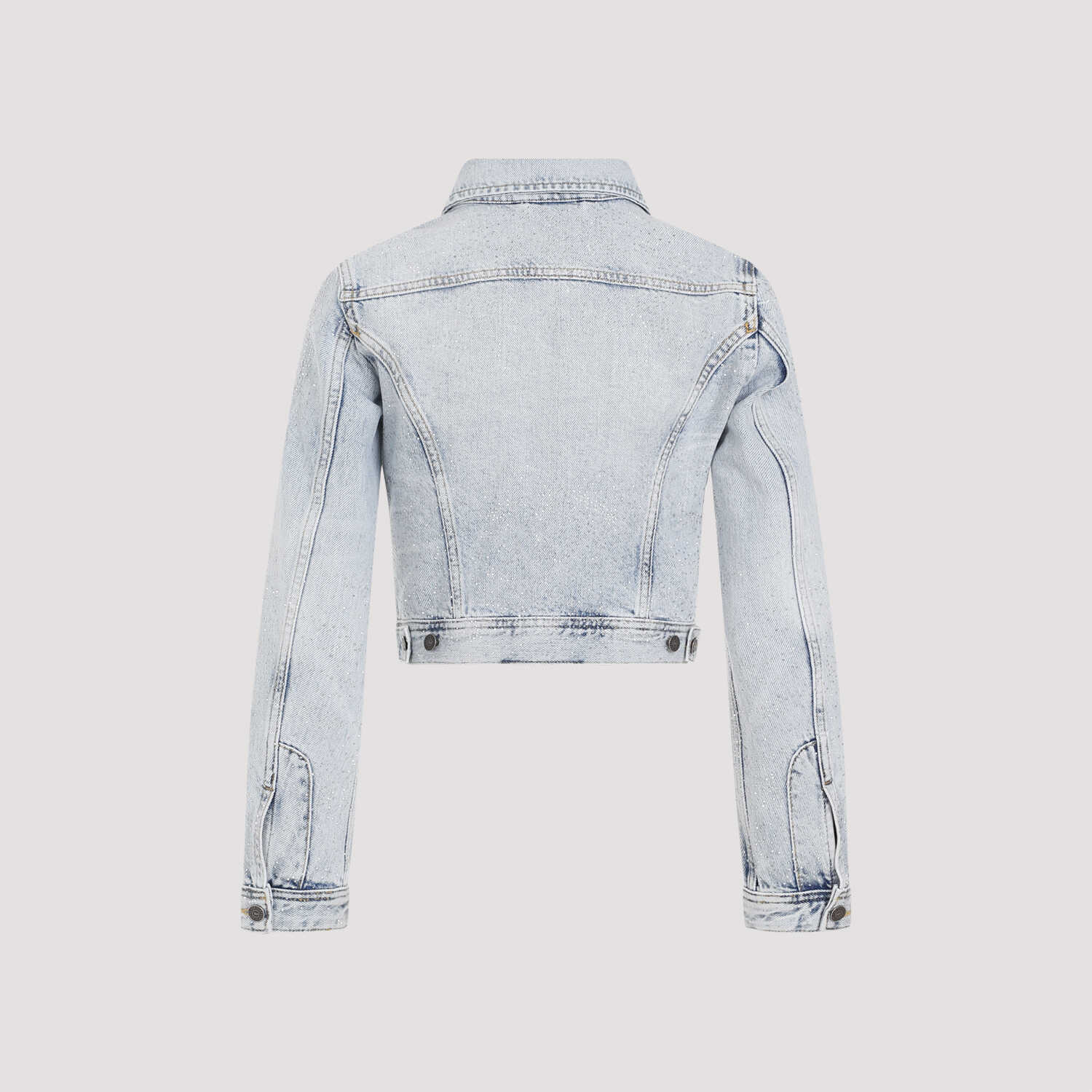 Diesel Blue De-Slimmy Jacket. Blue cotton denim, long sleeves, front button fastening, chest buttoned pockets. Buttoned cuffs, classic collar. Logo embroidery on chest.