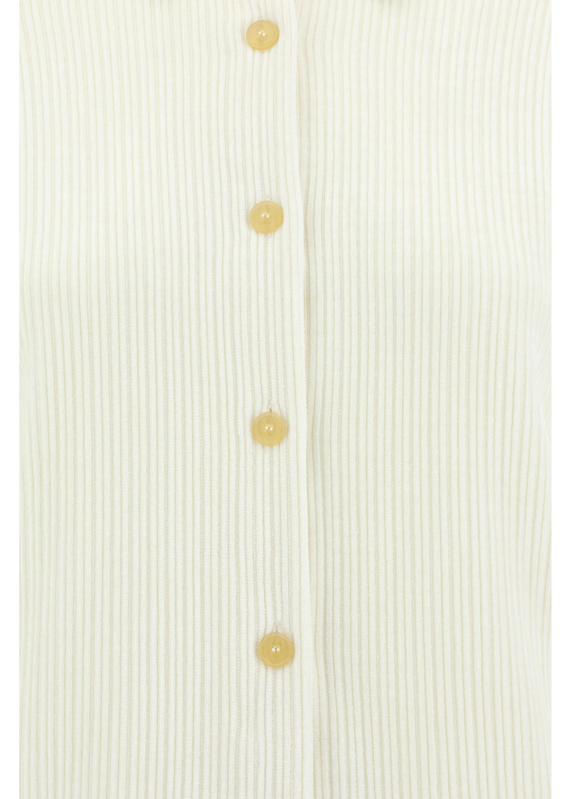 Shirt by Forte_Forte, ribbed velvet design, classic collar, button front closure, adjustable button cuffs, oversize fit, monochrome pattern.