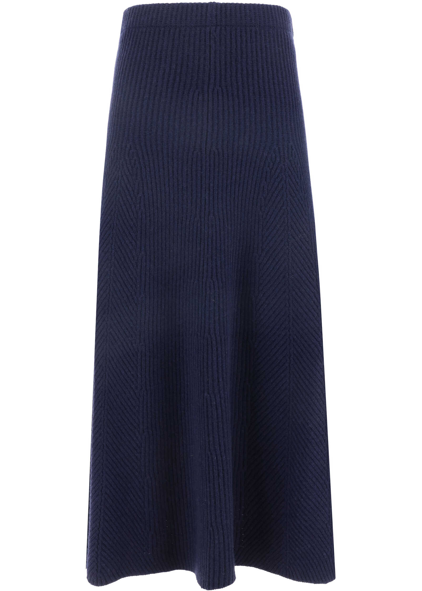 Virgin Wool Midi Skirt by Forte_Forte, features elasticated waistband, ribbed design, full skirt, monochrome pattern, regular fit.