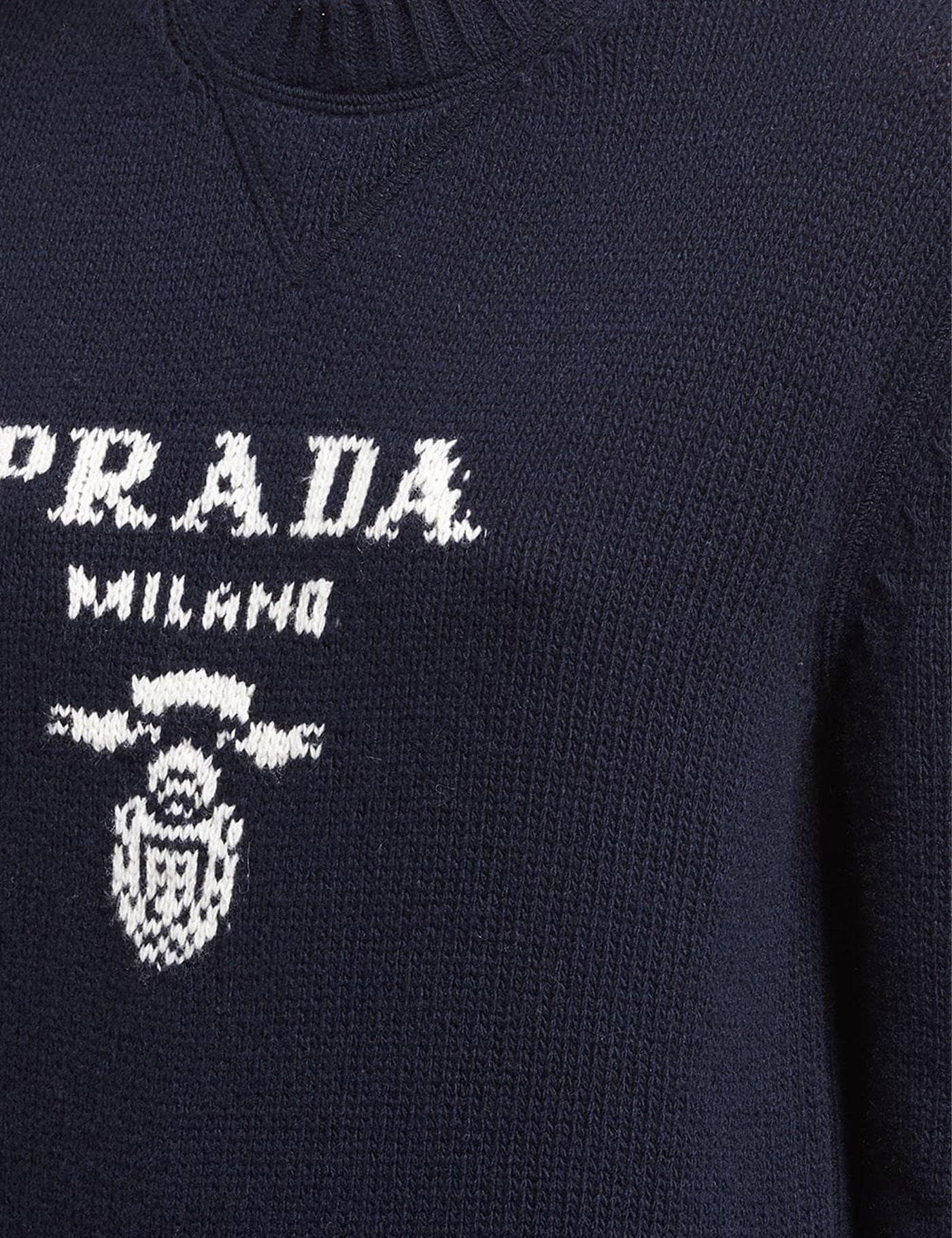 Wool Blend Sweater by Prada, ribbed crew neck, ribbed hem, ribbed cuffs, monochrome pattern, iconic brand signature embroidered in contrasting color on front, regular fit.