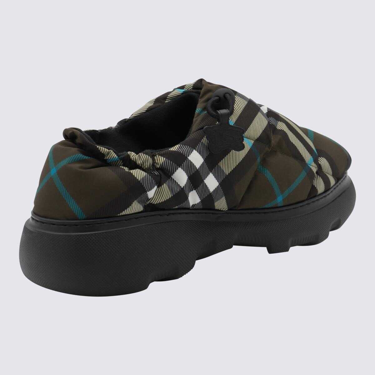 Black Pillow low boots from Burberry featuring round toe, ajustable size, all over check motif and leather sole.